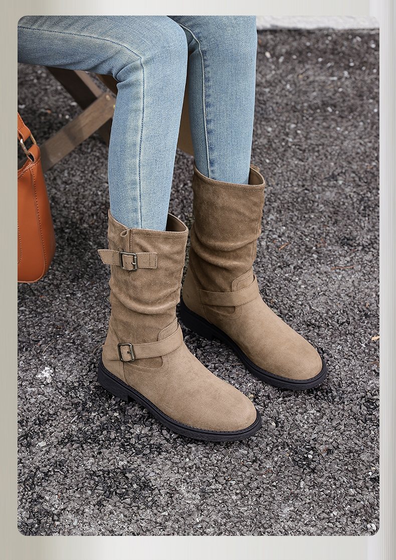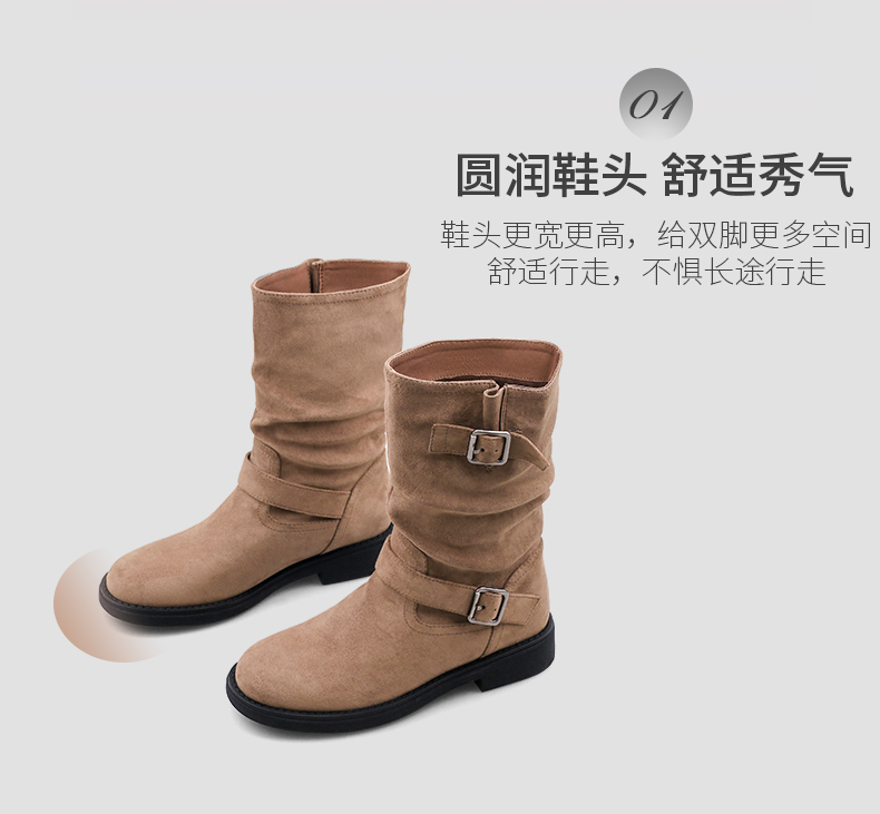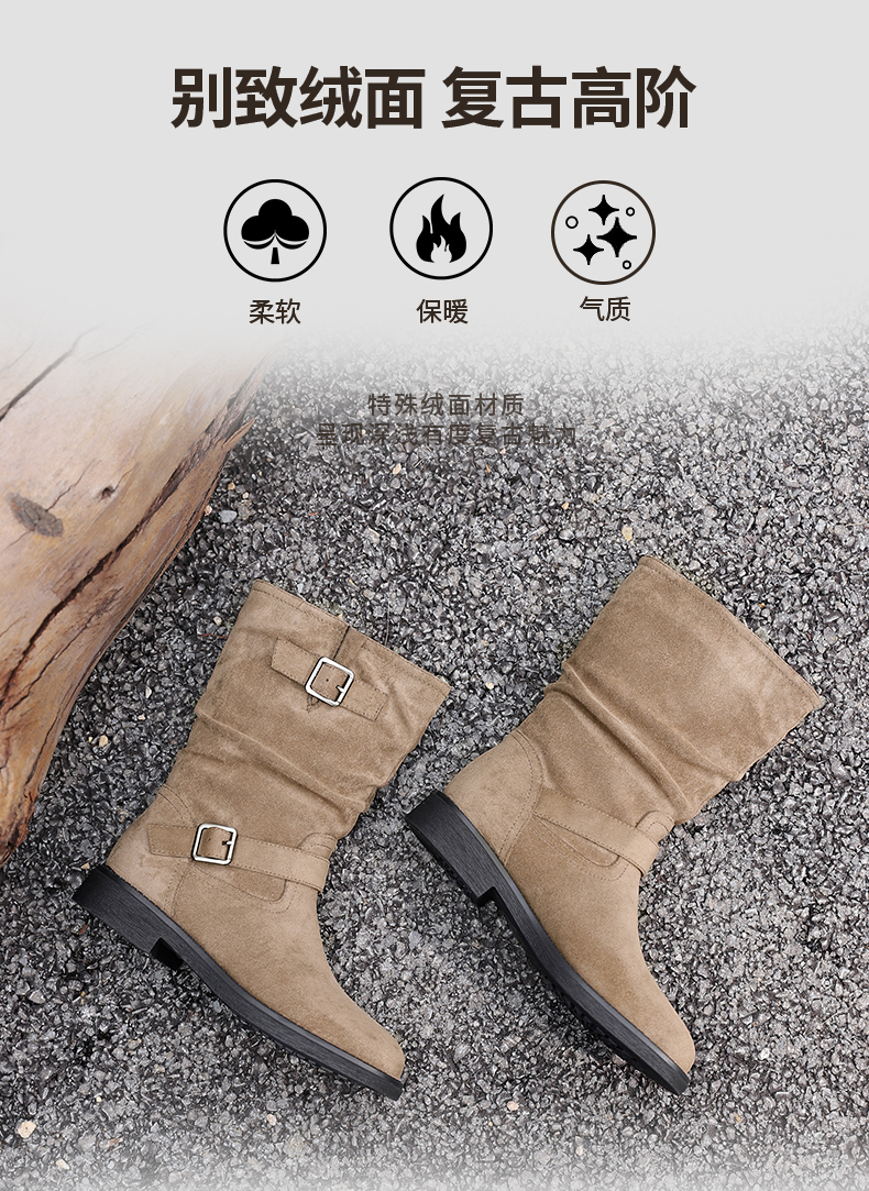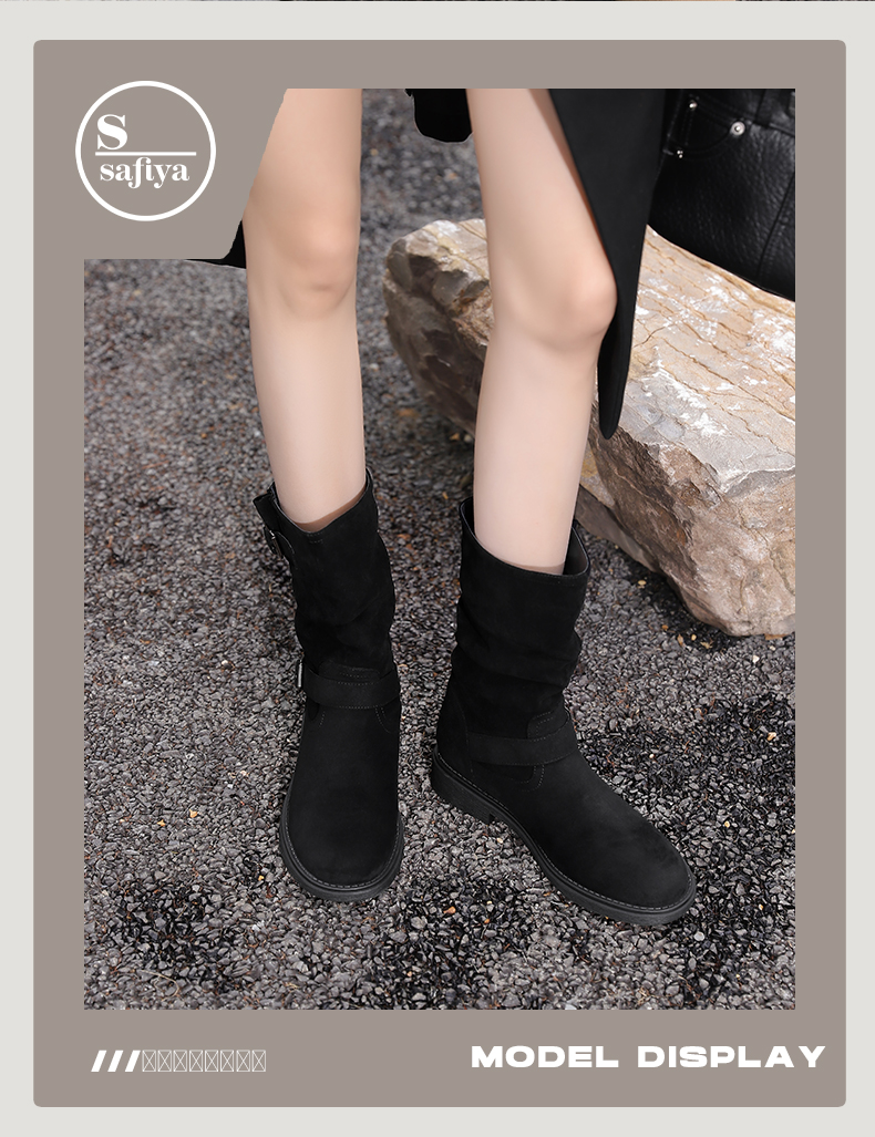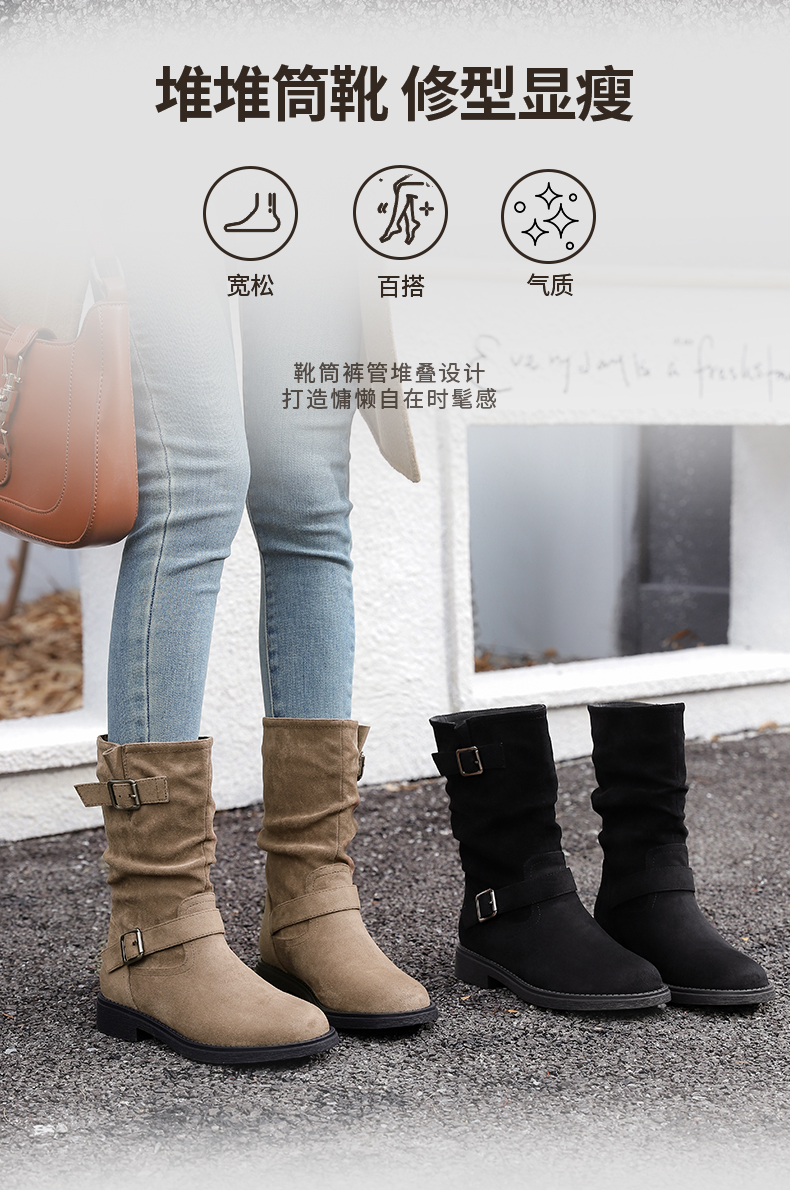 预售|Safiya/索菲娅2024美拉德复古绒面气质百搭套筒堆堆裤管靴 SF44116408