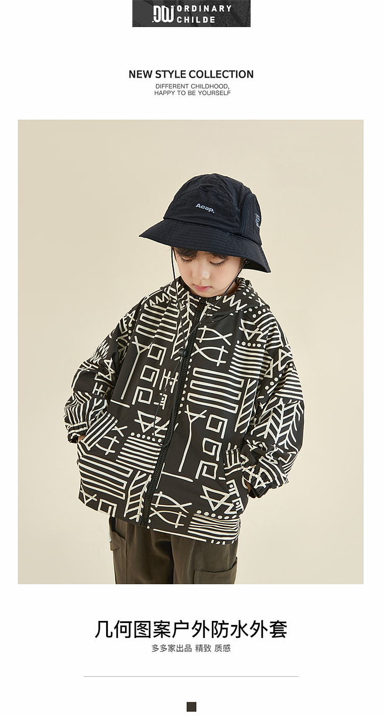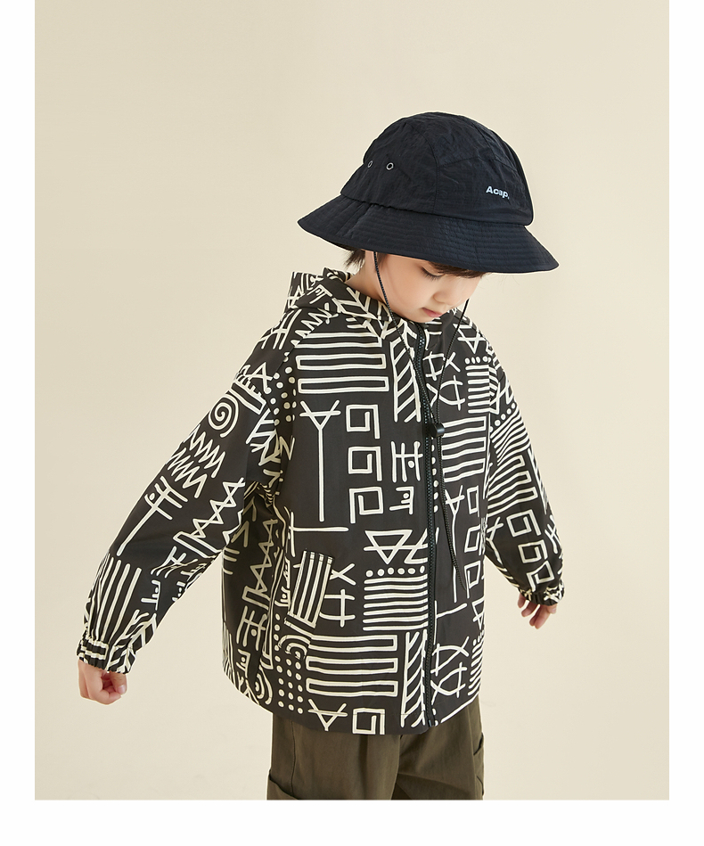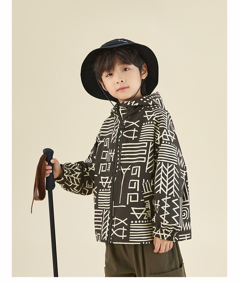 【团购价99.9】多多家男童外套2024春秋新款户外*满印冲锋衣秋装儿童中大童潮9191