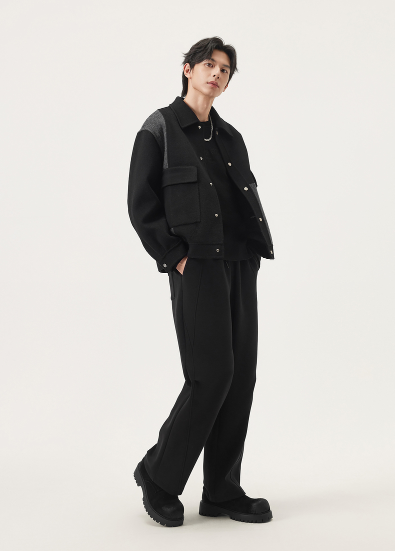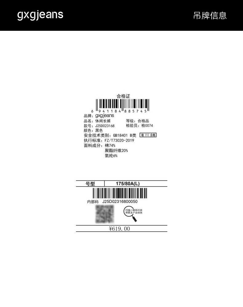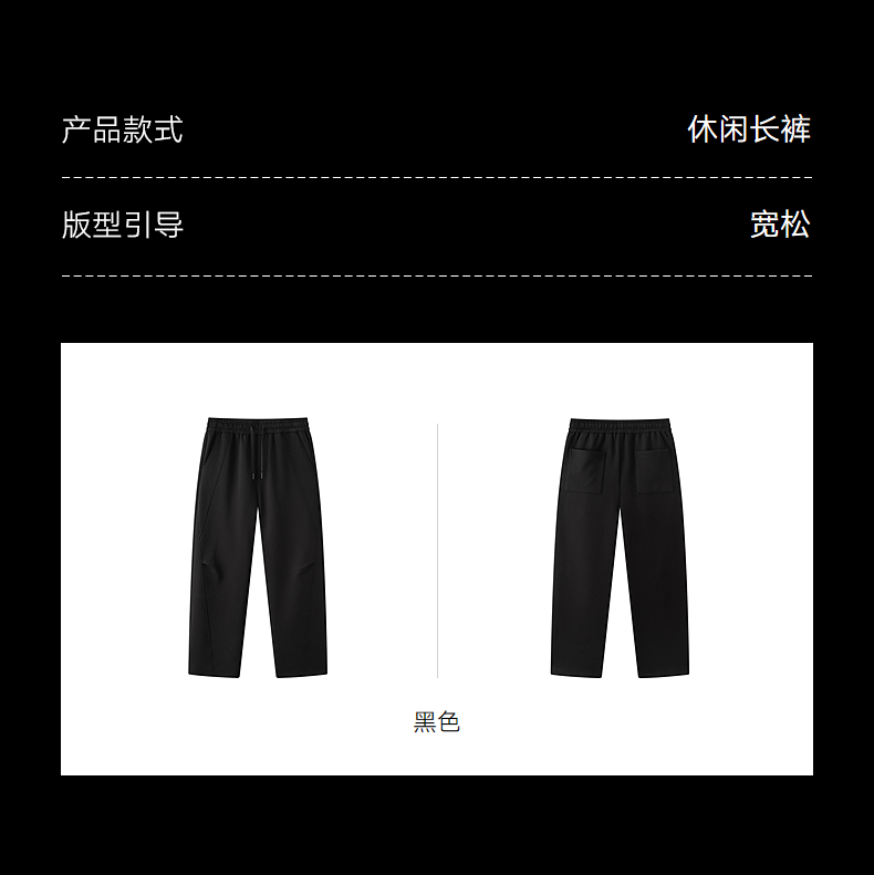 gxg.jeans男装 黑色分割设计休闲宽松卫裤休闲长裤男 25年秋