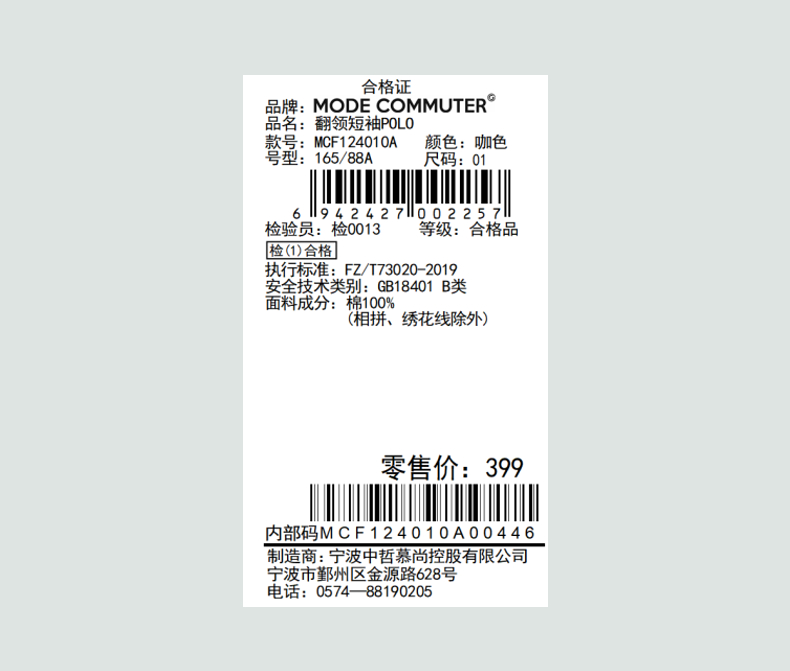 MODE COMMUTER | MC全棉优质精纺棉纱翻领短袖POLOMCF124010A