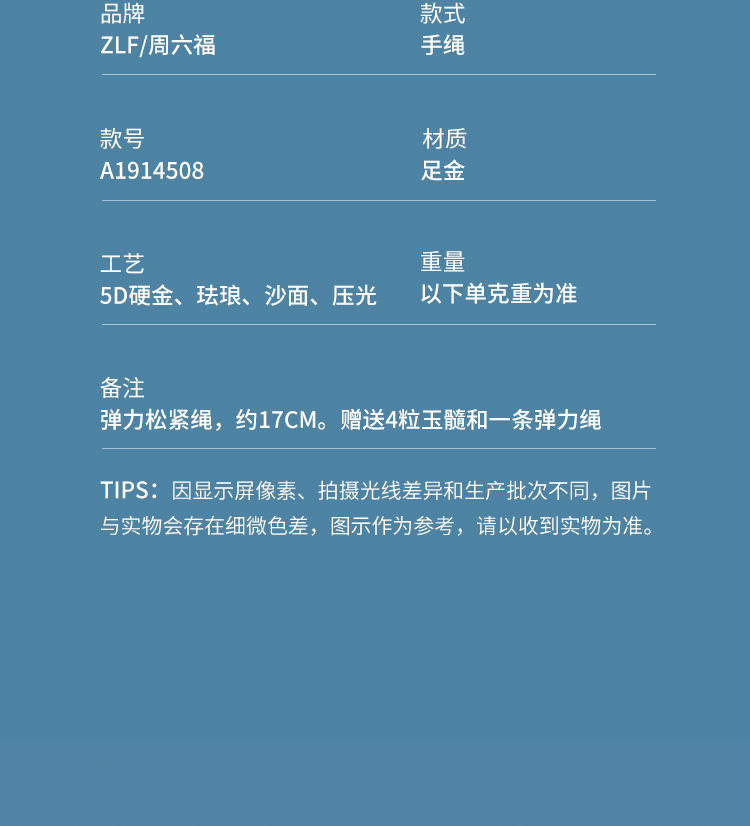周六福黄金玉髓手串女款5d硬金定价足金手绳