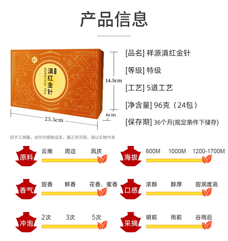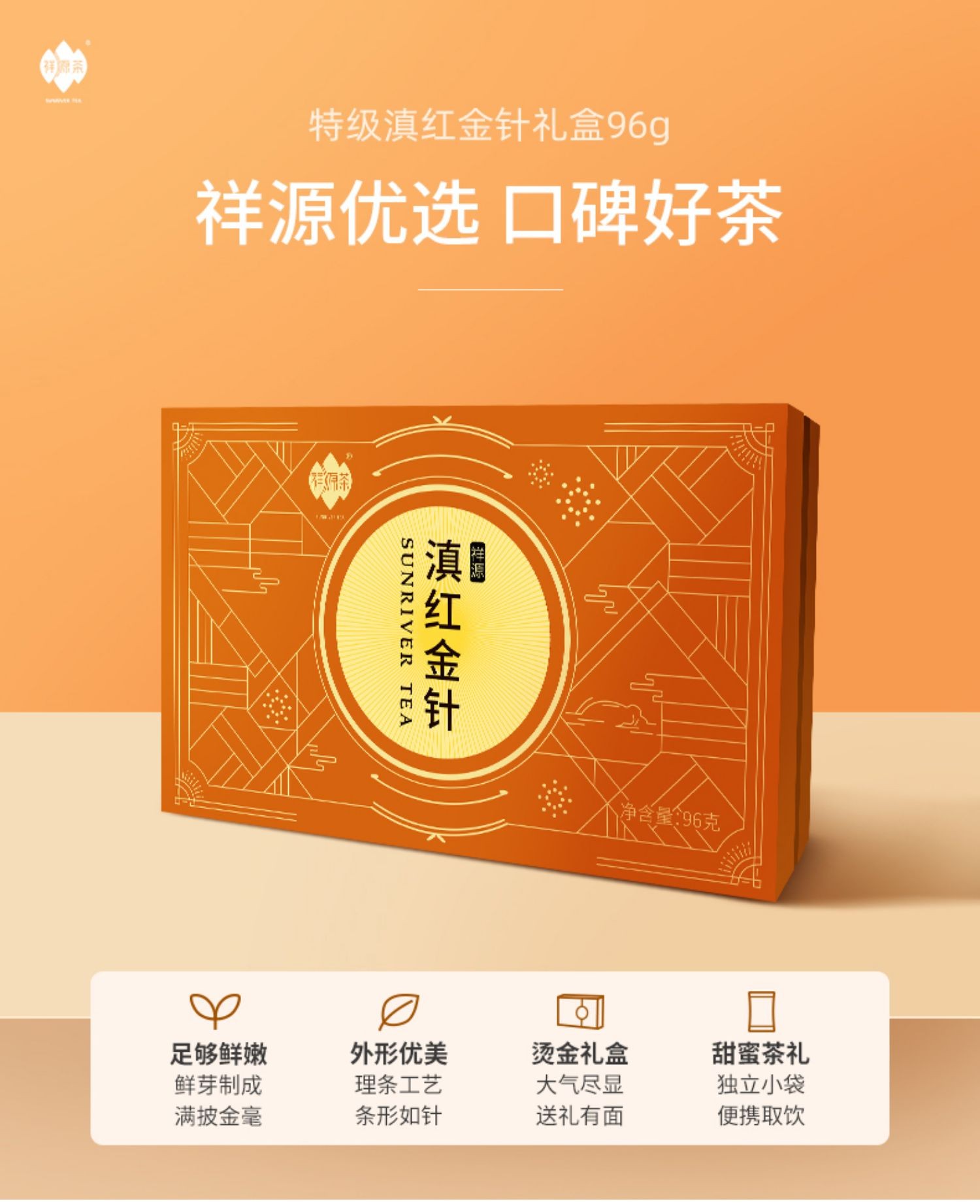 祥源茶特级滇红金针红茶云南凤庆蜜香金芽礼盒装96g