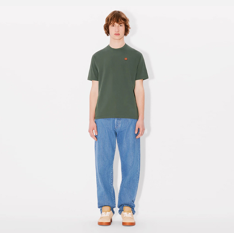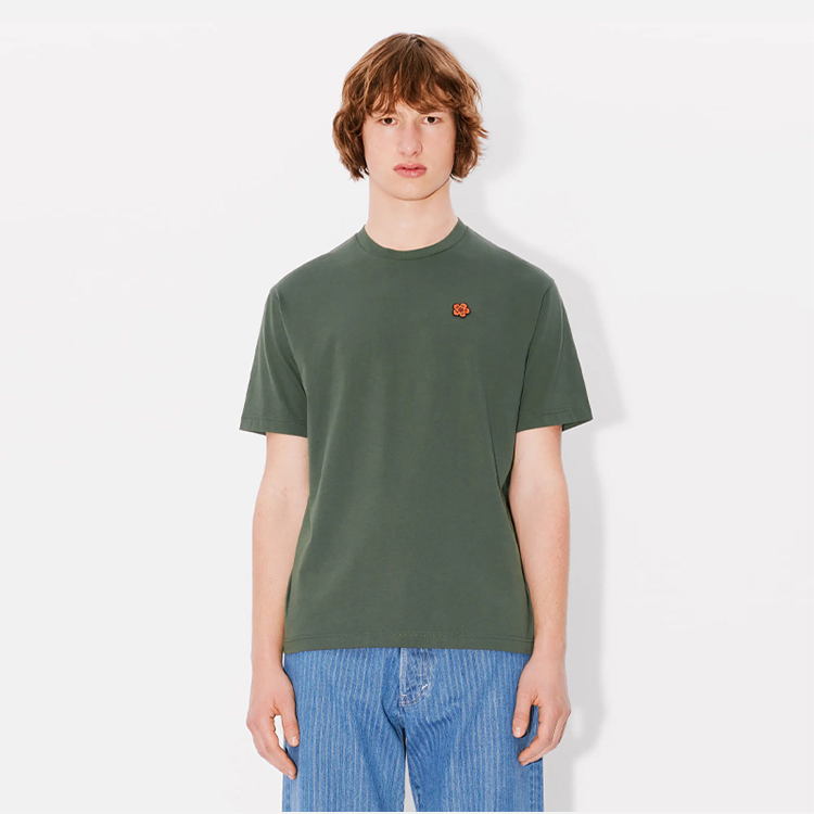 KENZO 高田贤三 男士小海棠花刺绣徽标棉质圆领短袖T恤 绿色 FE65 TS474 4SG 51