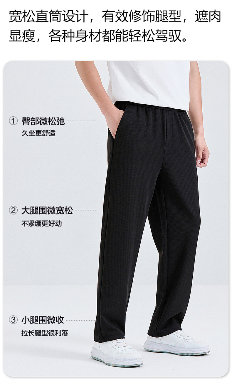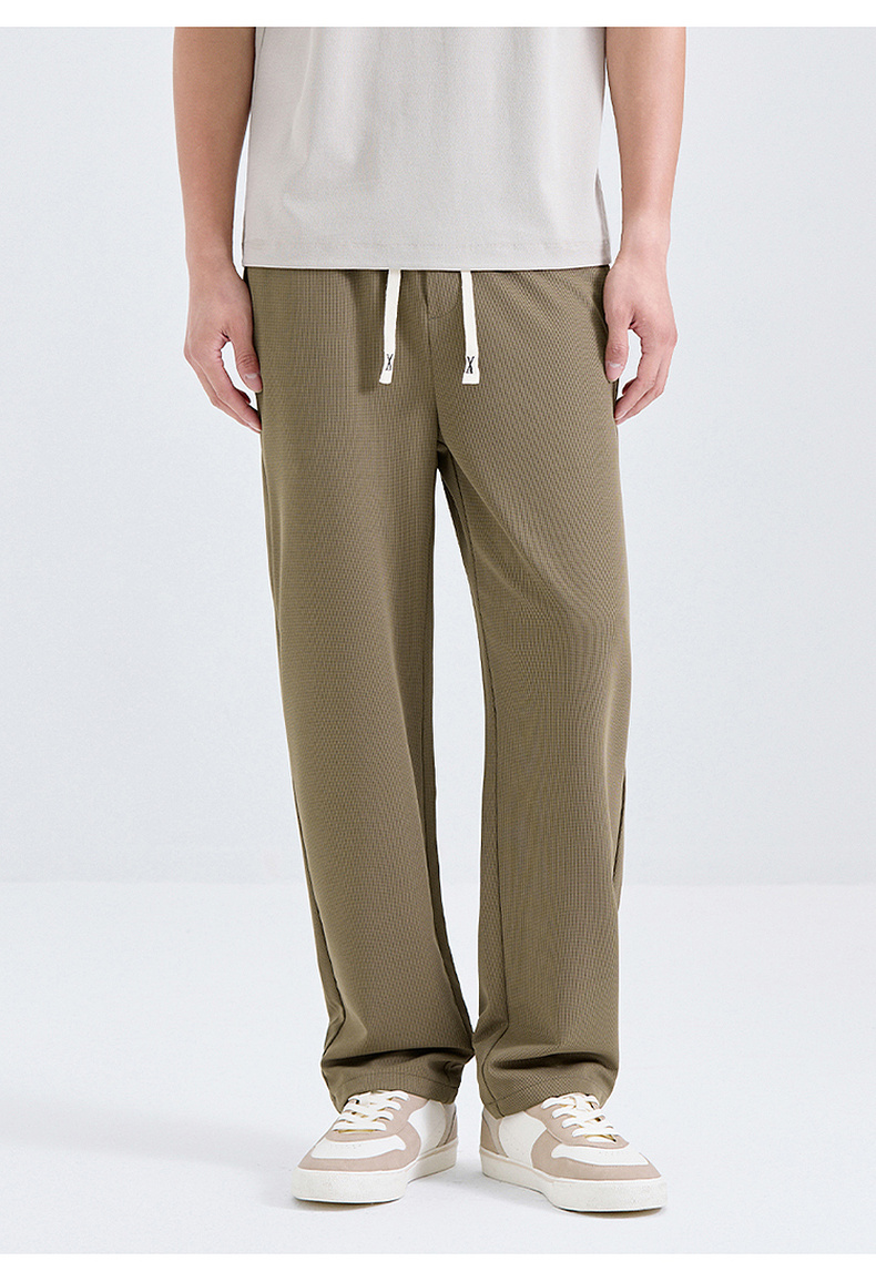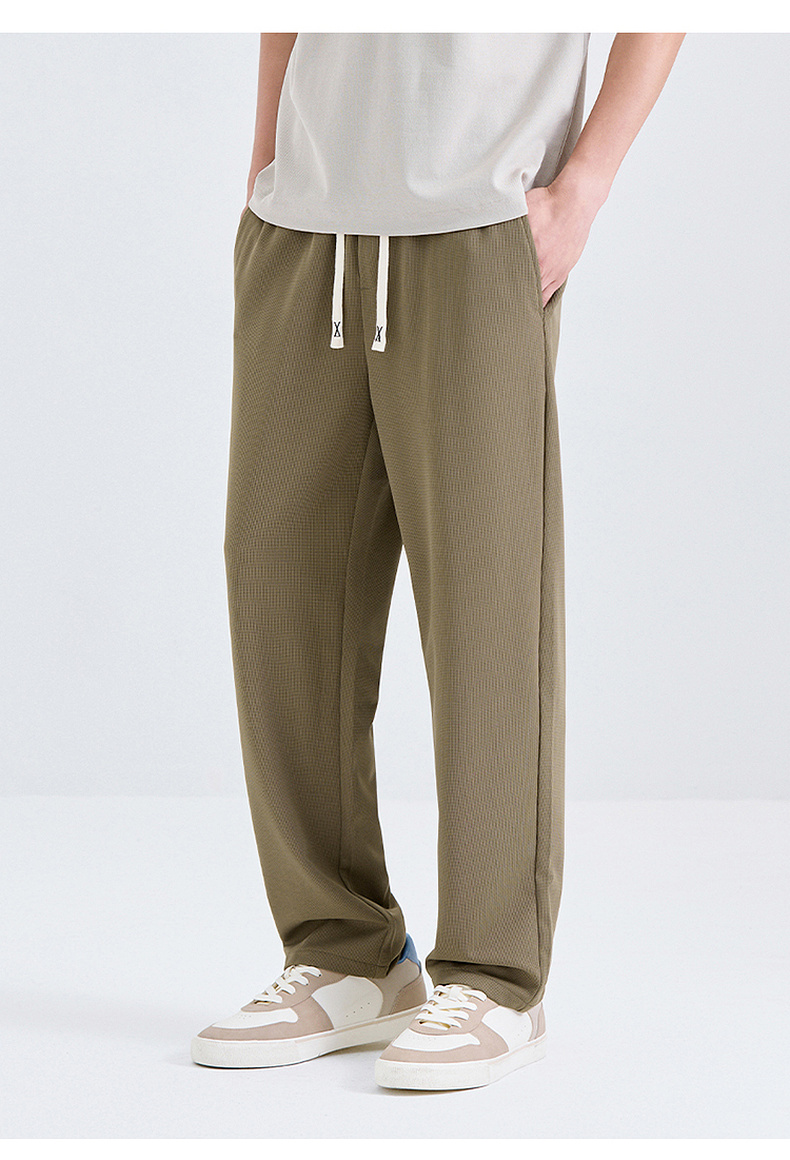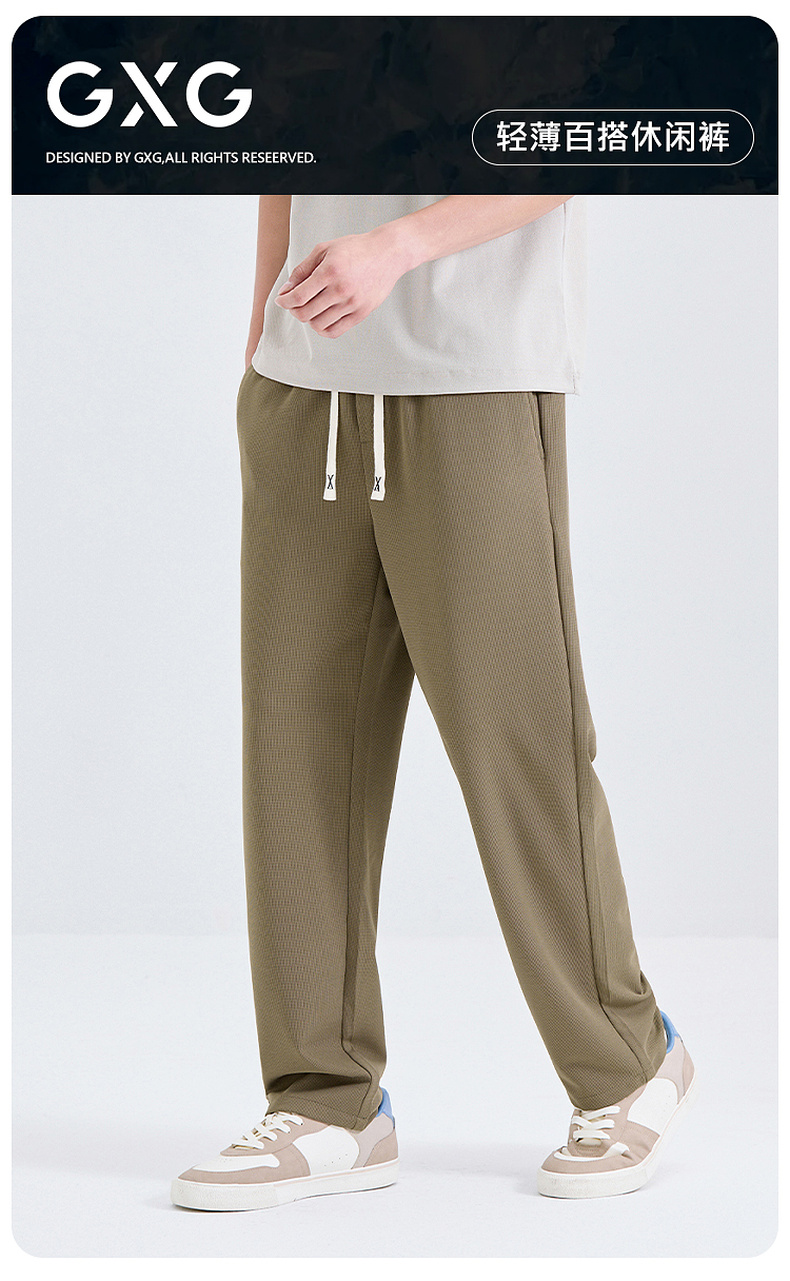 GXG男装25夏季时尚松紧腰系绳纯色百搭垂顺轻薄男式直筒休闲裤K&C