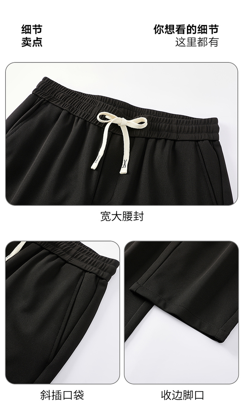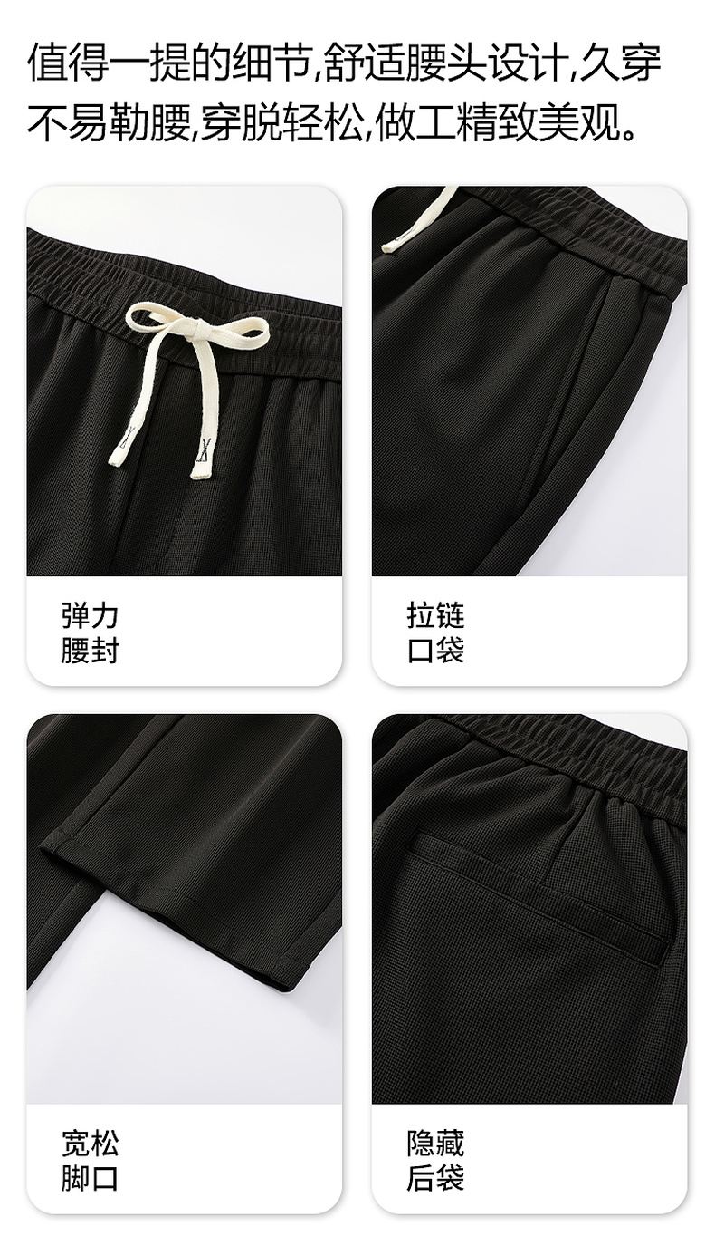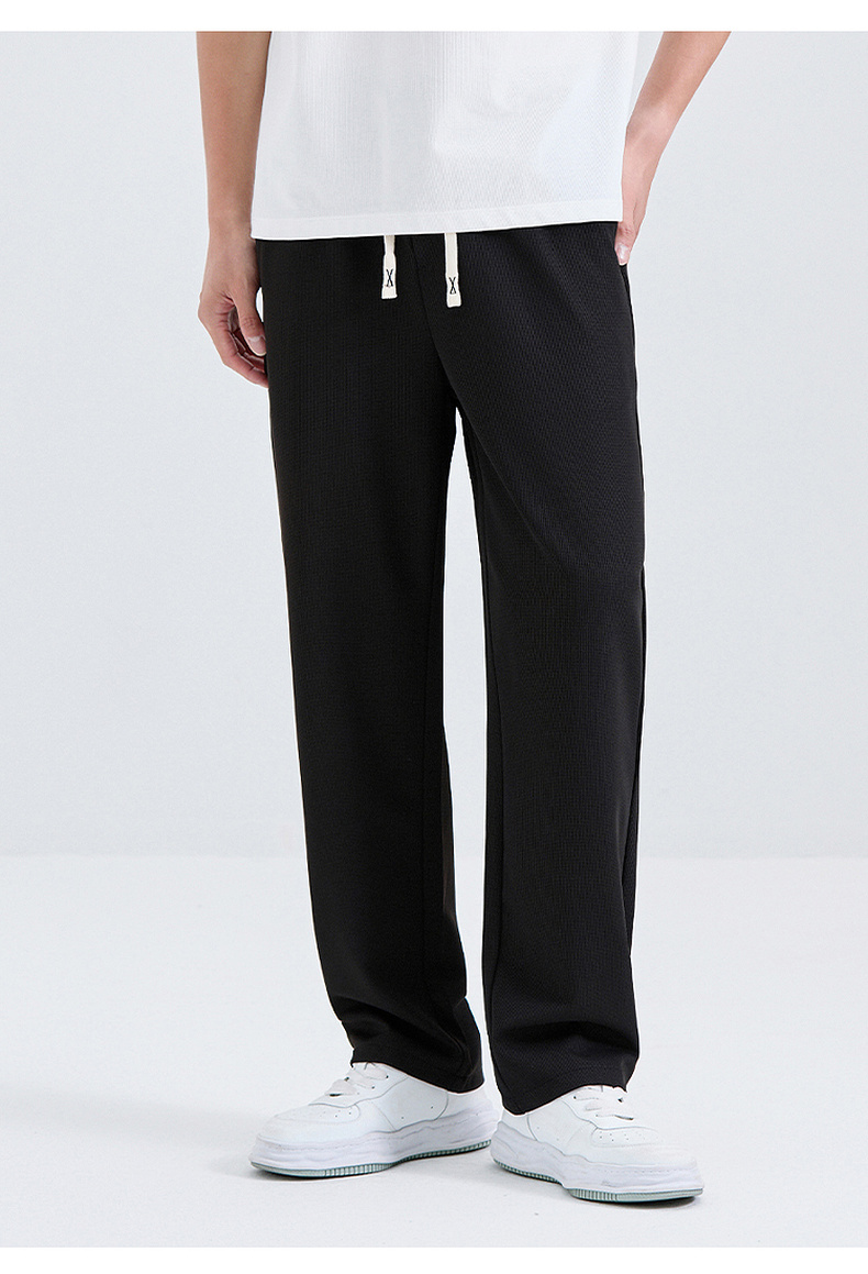 GXG男装25夏季时尚松紧腰系绳纯色百搭垂顺轻薄男式直筒休闲裤K&C