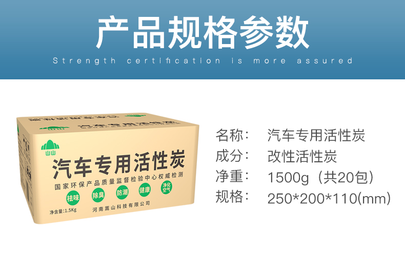 山山 汽车专用活性炭1500g除甲醛除异味新房去味装修吸甲醛竹炭包汽车净化空气碳包新车内除味用品