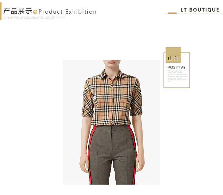【二】BURBERRY 巴宝莉 女士 Vintage 格纹弹力棉质斜纹短袖衬衫 8018475 A7028