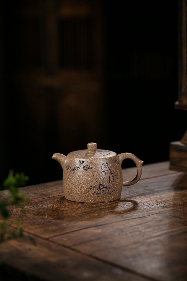 【坦然】 作者:冯娟(制壶)程文兵(陶刻) 泥料:紫泥 容量:280cc