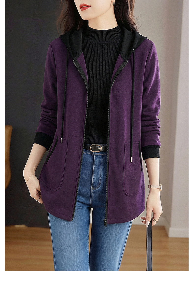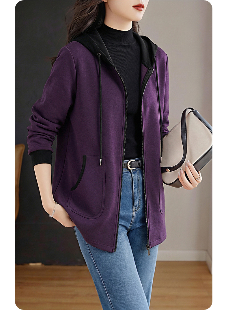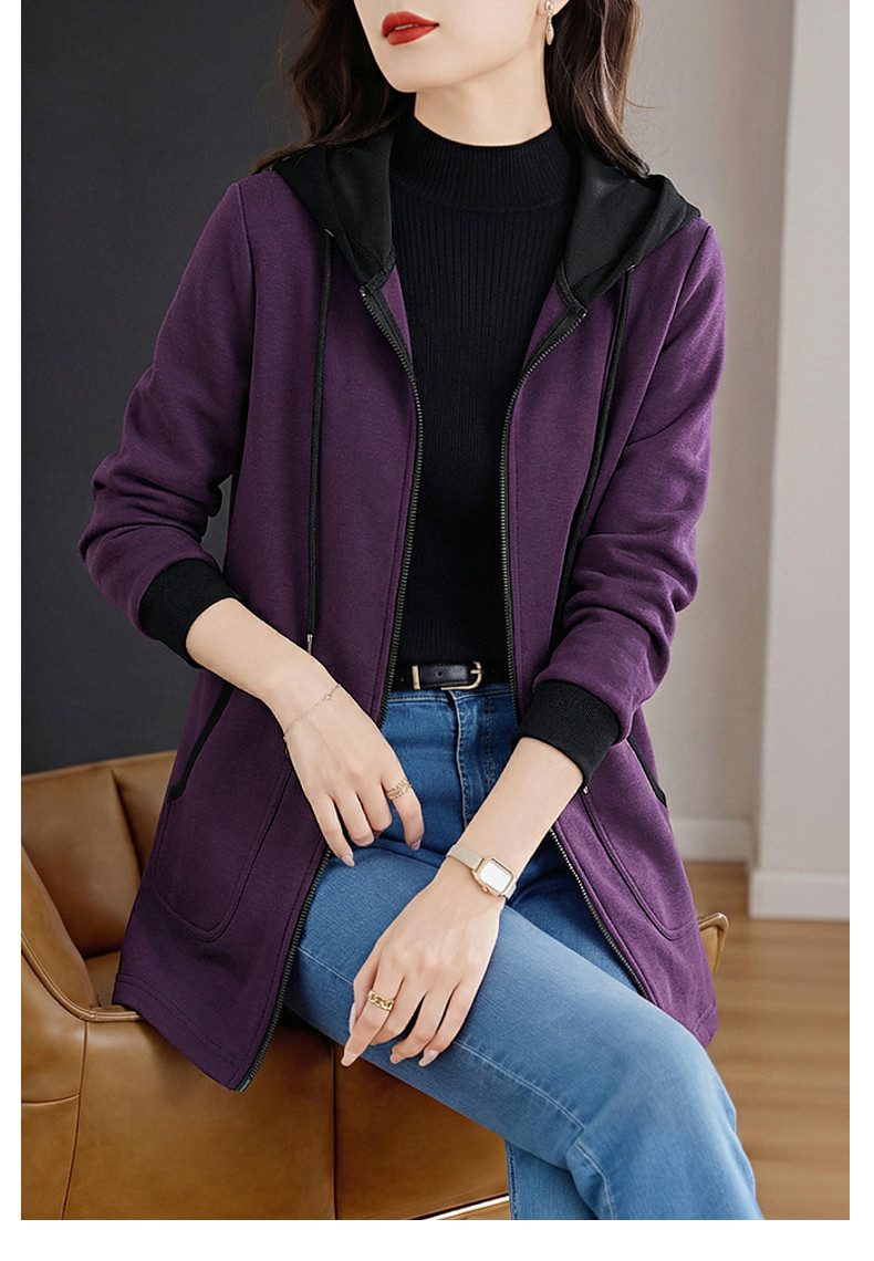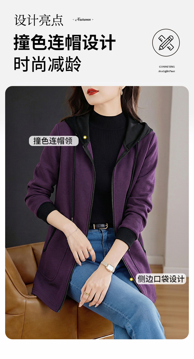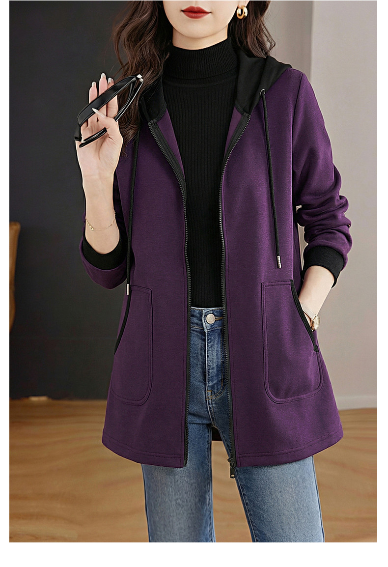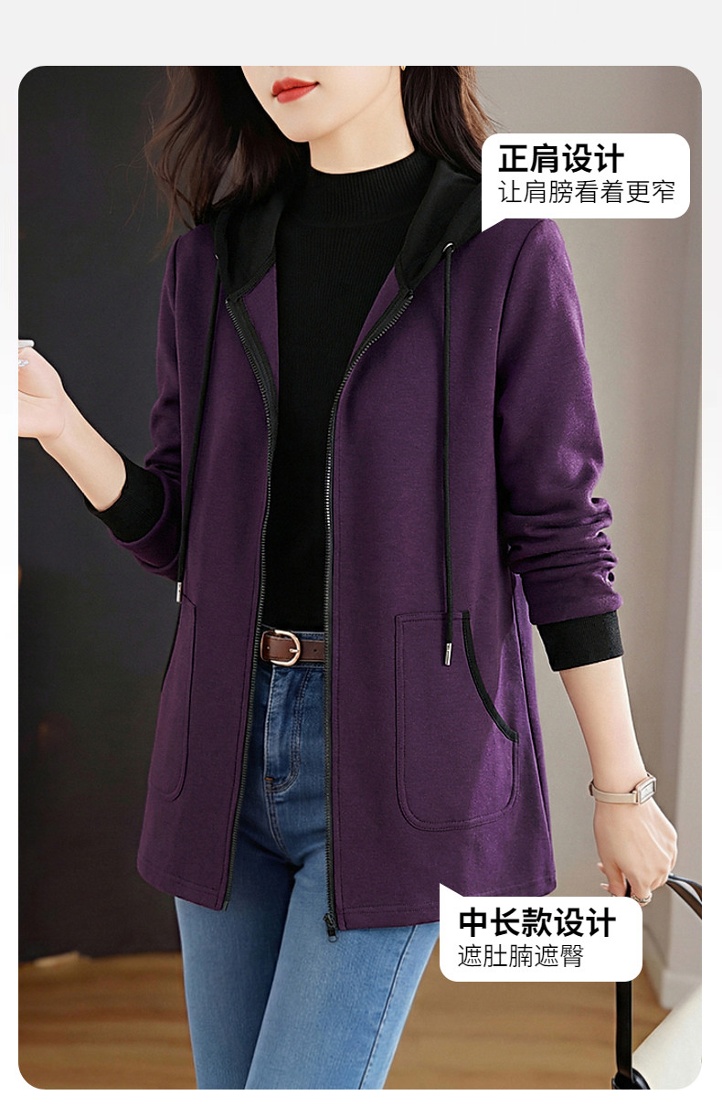 春秋连帽卫衣外套女冬季新款时尚紫色大码长袖中长款遮屁上衣胖mm