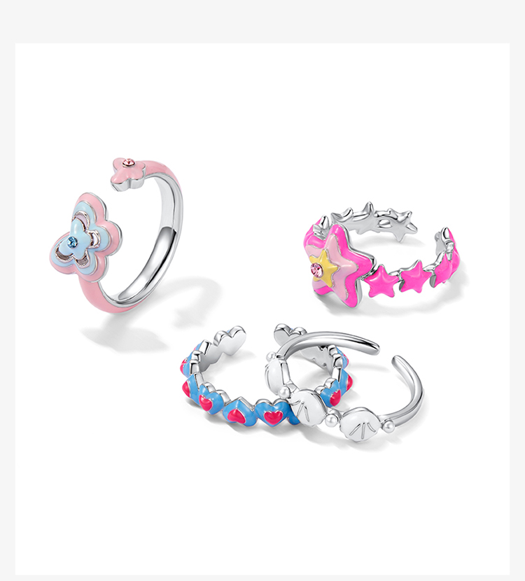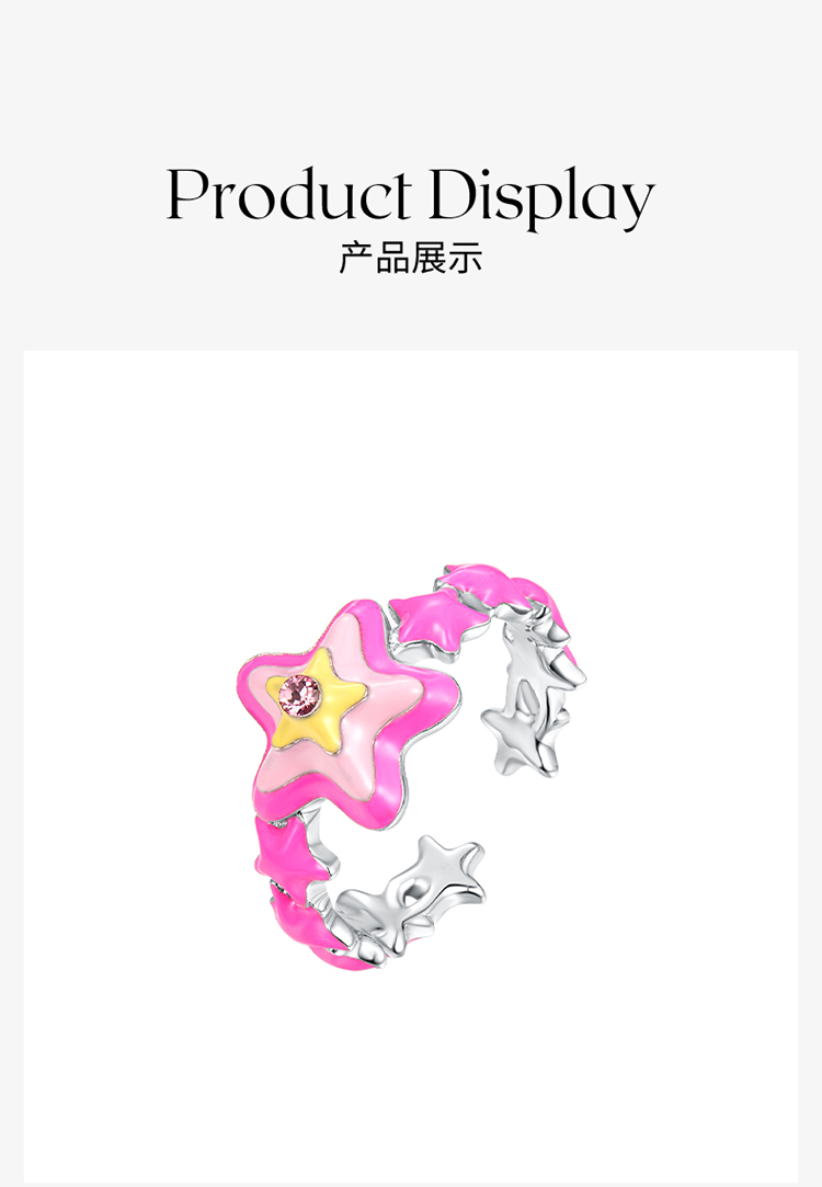 ZEGL设计师粉色芭比风戒指女夏日多巴胺指环小众设计开口食指戒子