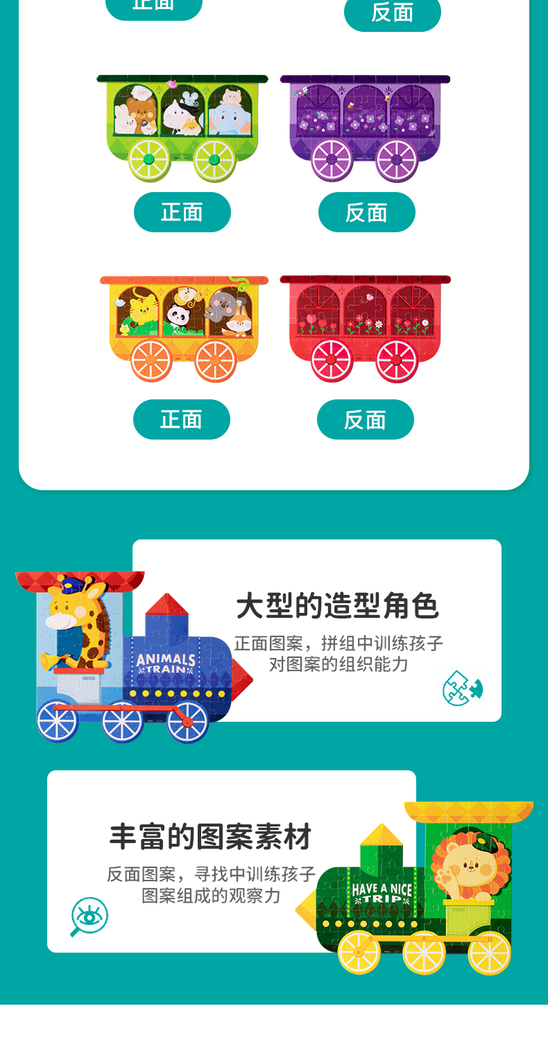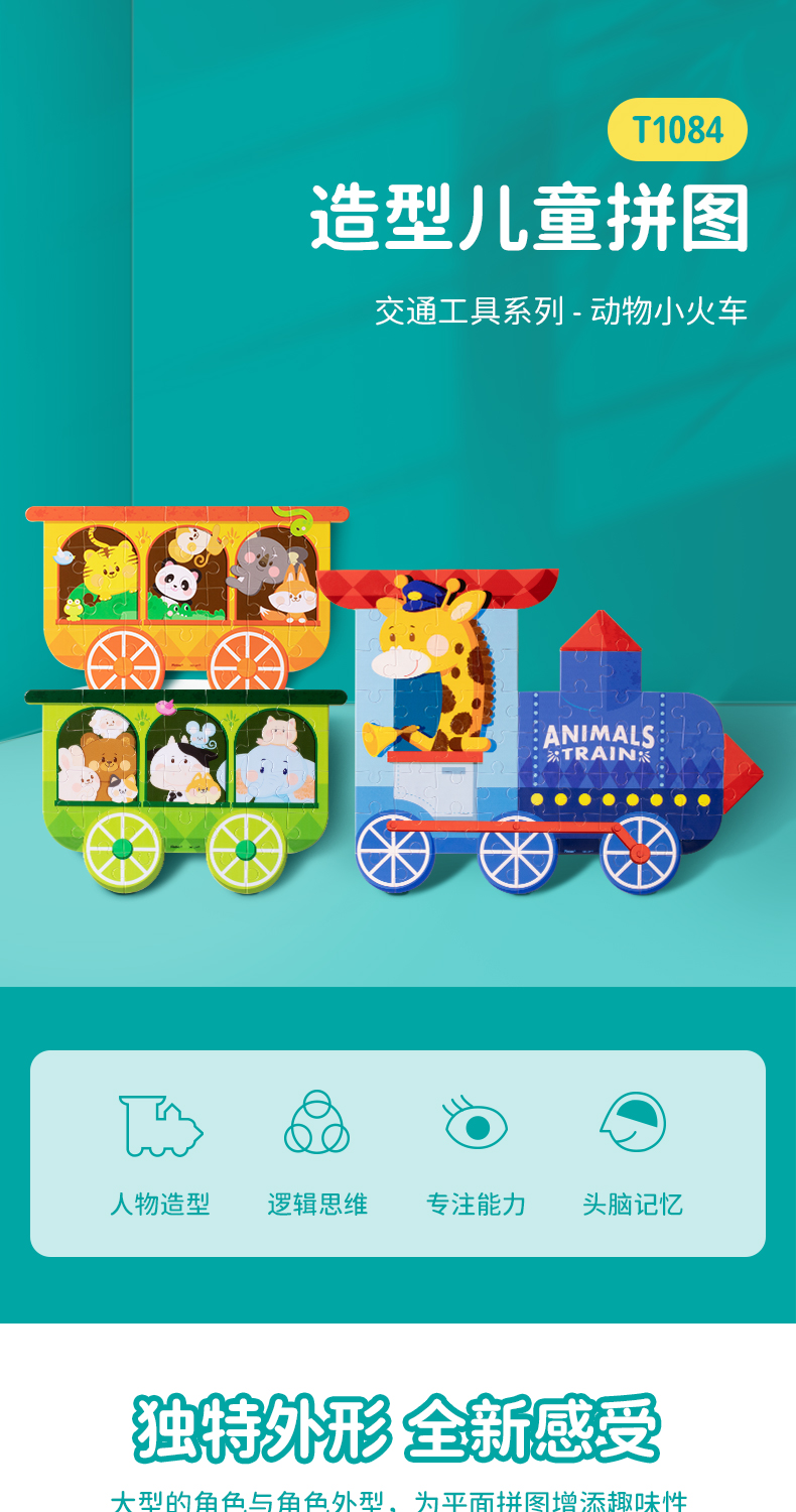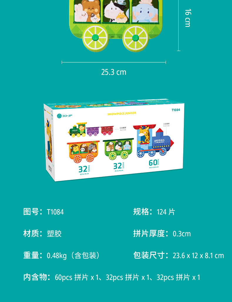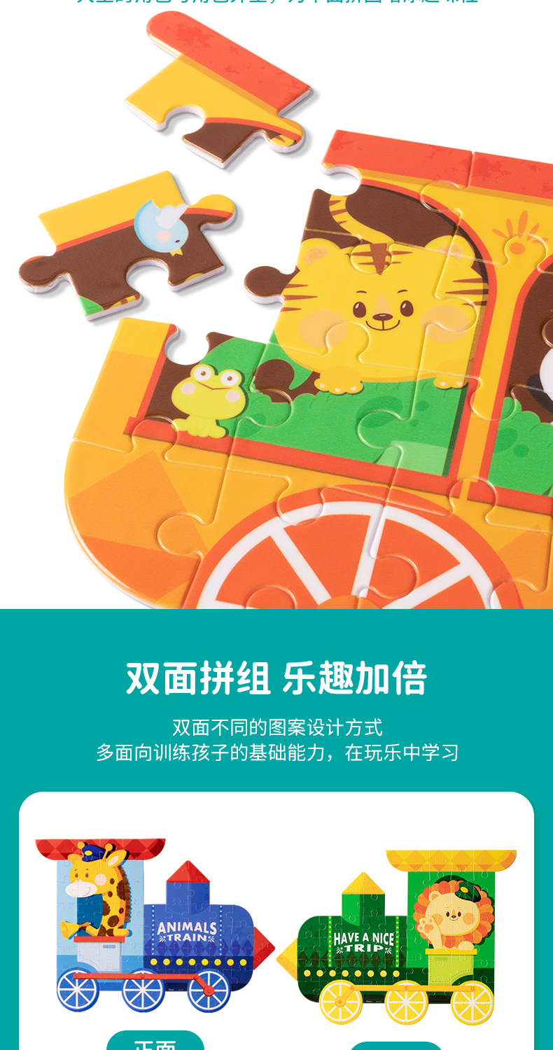 【折扣商品 不退不换】124片 儿童造型拼图 塑料拼图T1084交通工具系列-动物小火车