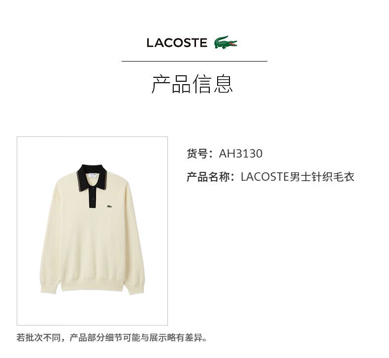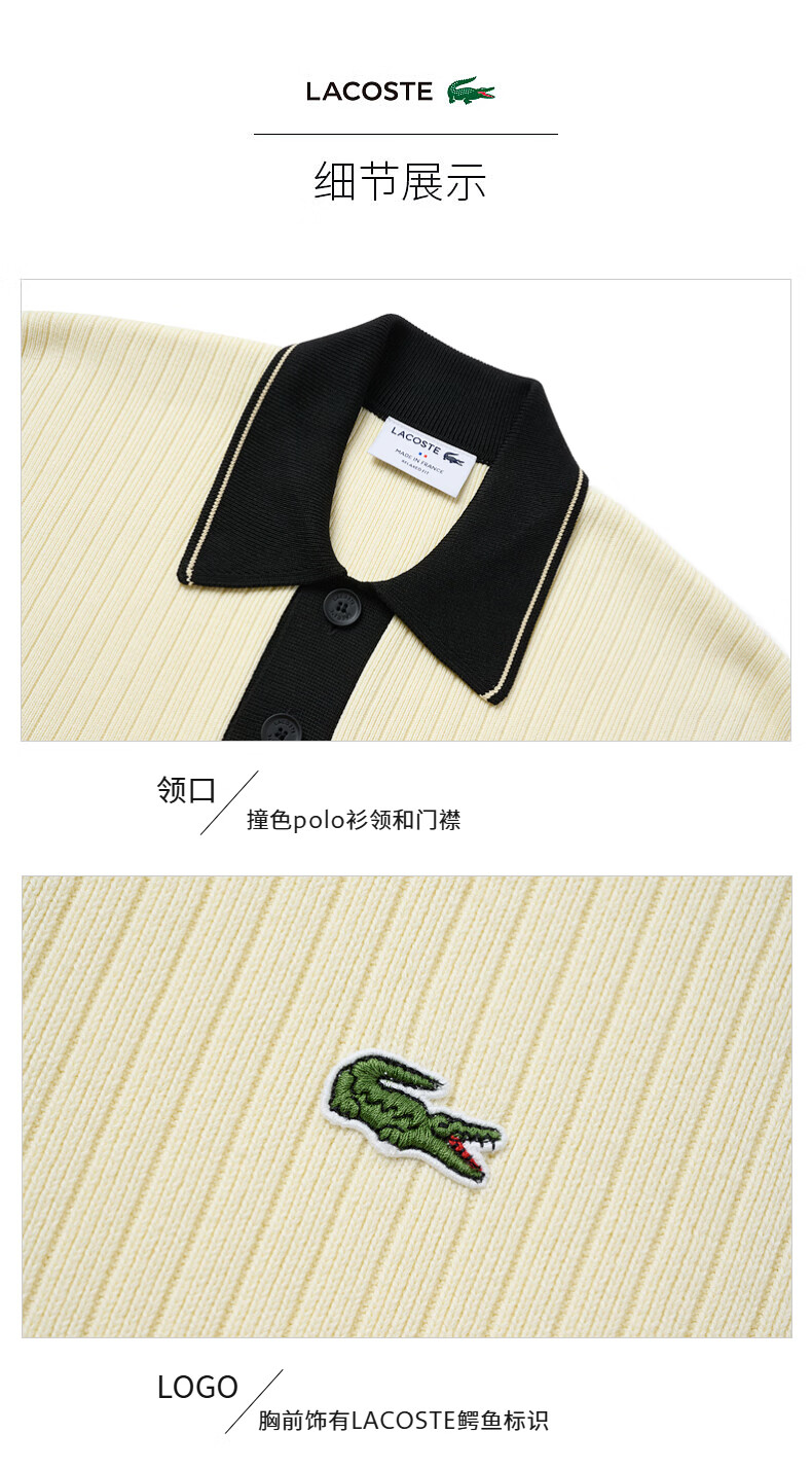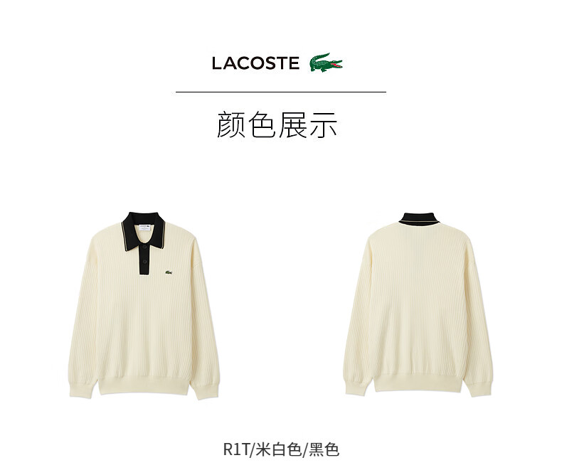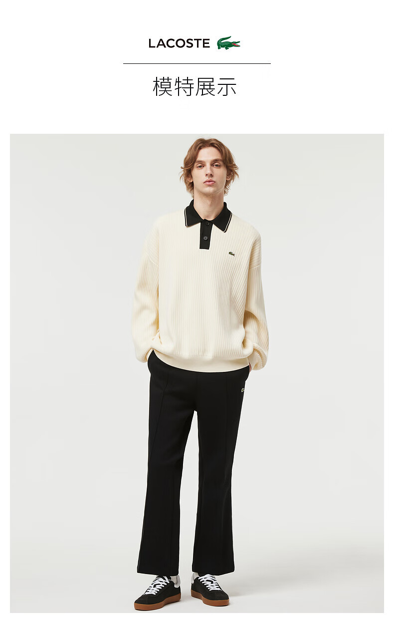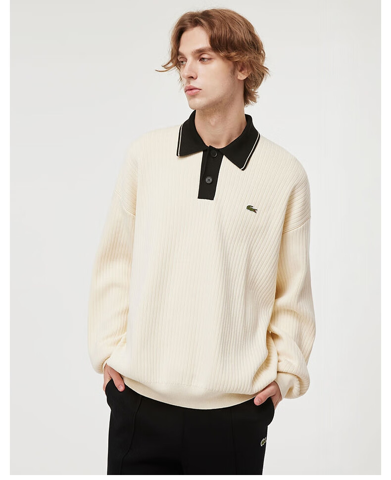 Lacoste法国鳄鱼男装新款时尚宽松纯棉Polo领翻领针织毛衣AH3130-10