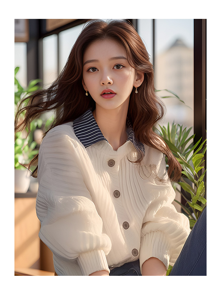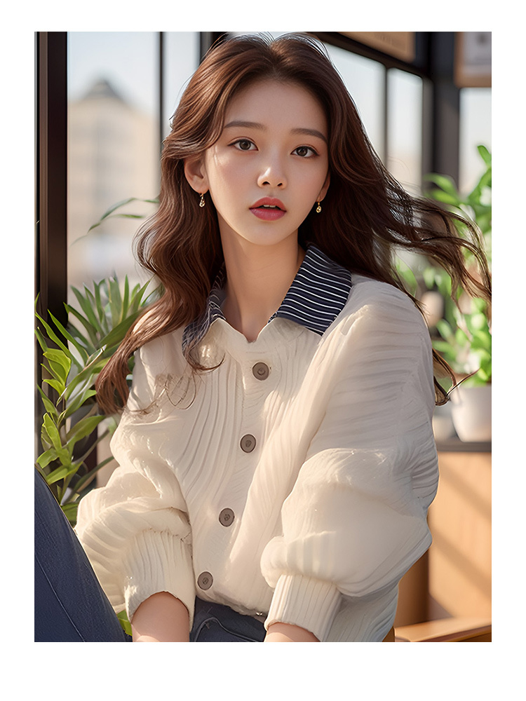 奢姿2024年秋季新款大码女装拼接翻领上衣胖妹妹减龄气质针织开衫9843663149