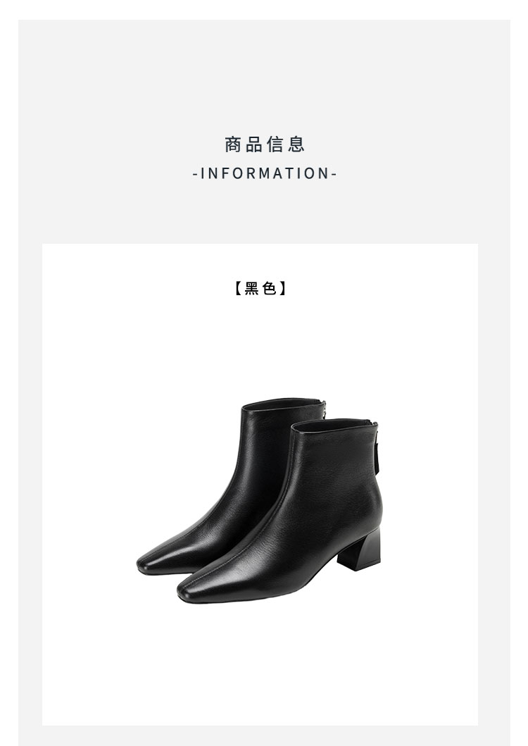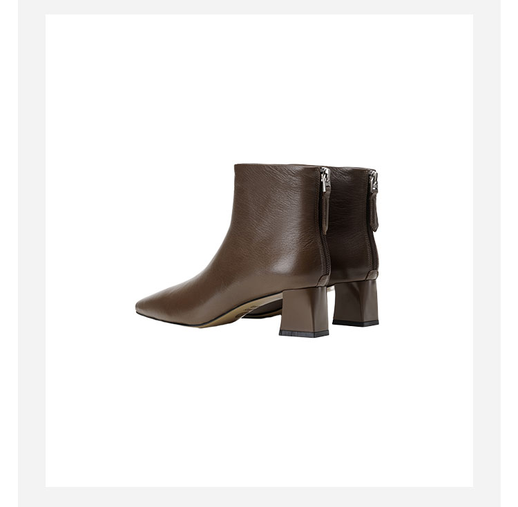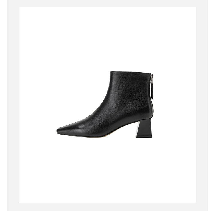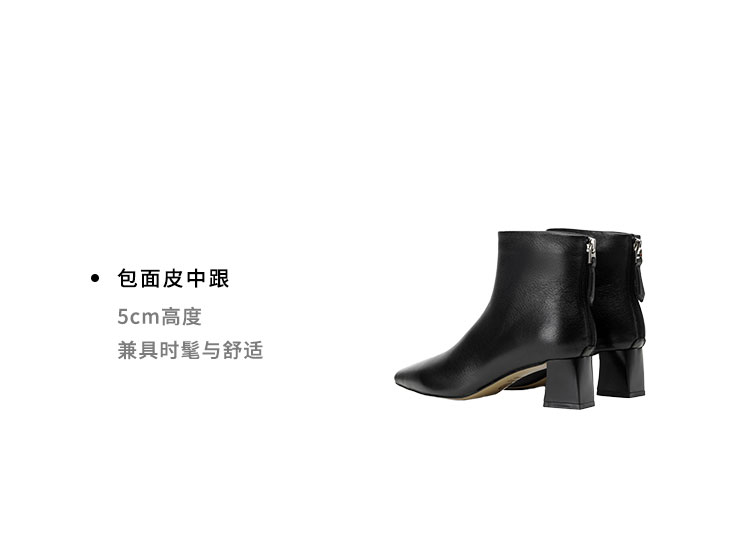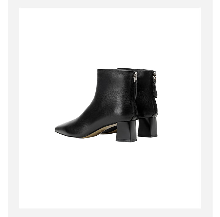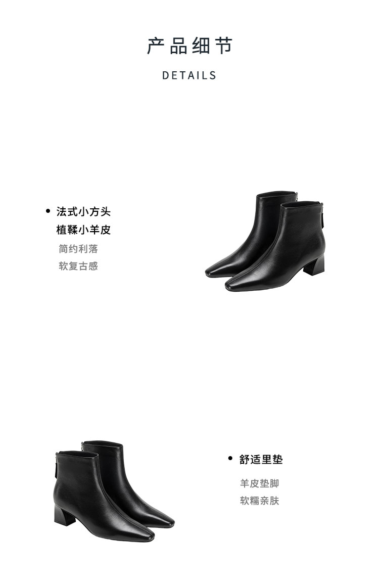 Westory2025年冬季小方头中跟光面羊皮简约百搭后拉链短靴S25DS85771
