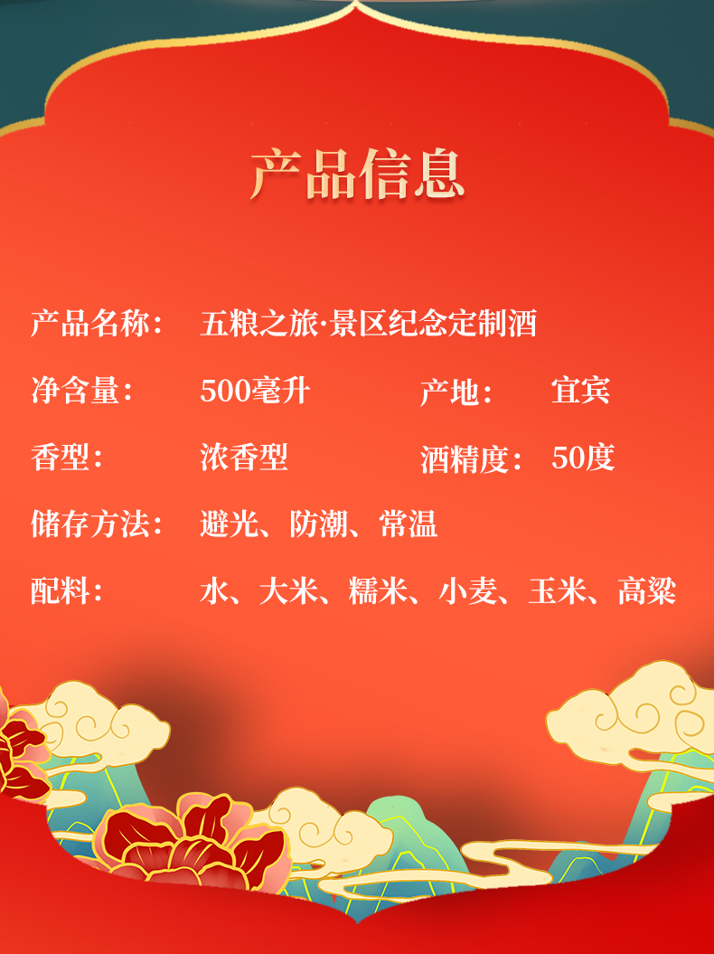 “五粮之旅.景区纪念”礼盒(内含景区纪念酒 50度 500mLx2瓶;酒具x1套)*1套