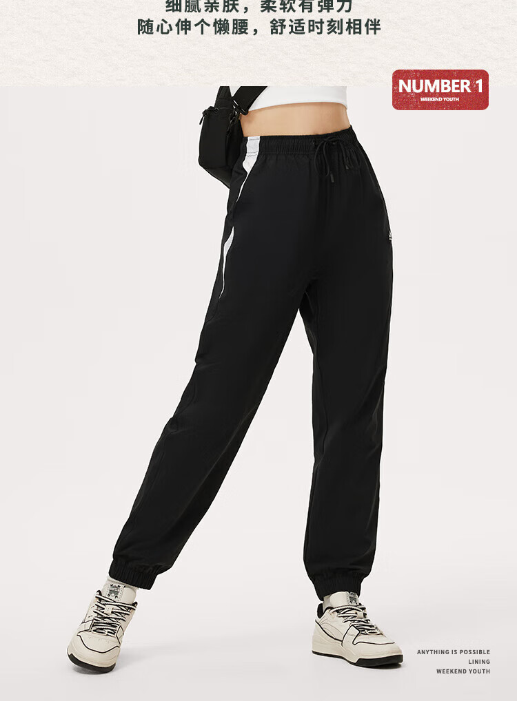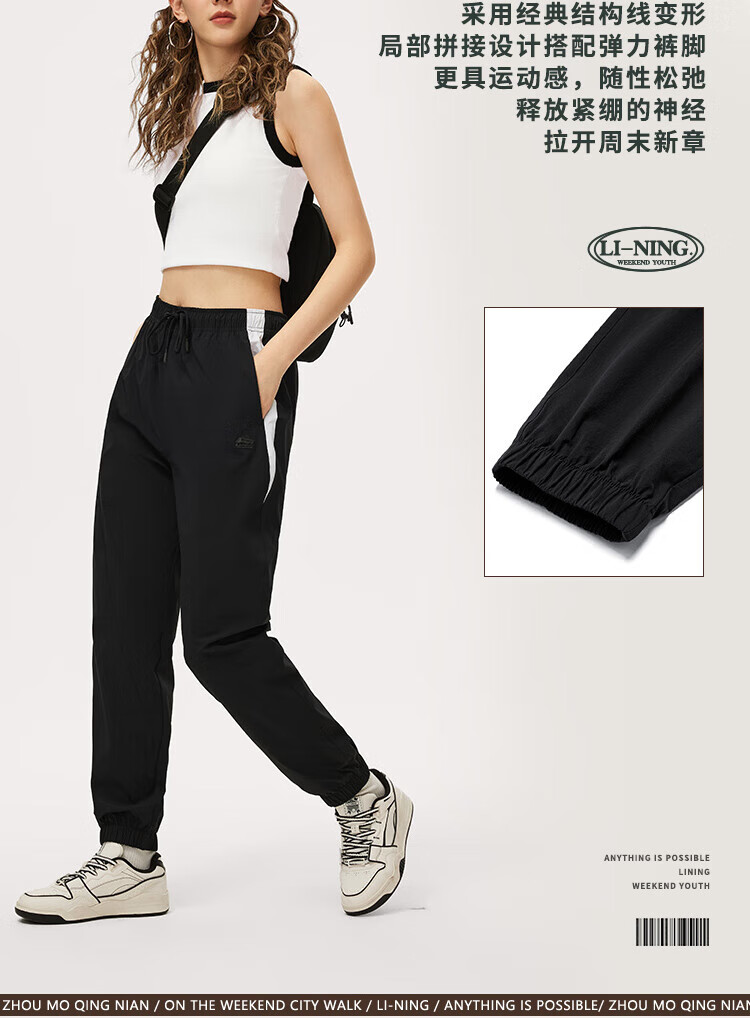 李宁速干凉爽防晒运动长裤女24春夏新款慵懒风宽松束脚裤子AYKU366
