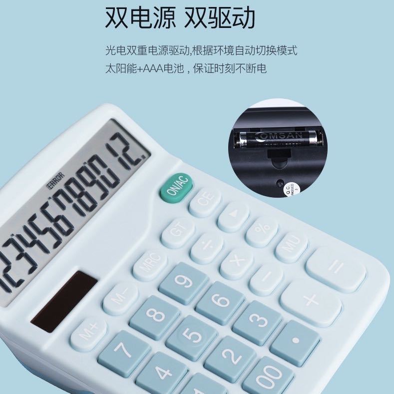 双电源12位计算器太阳能办公财务会计专用大屏计算器学生用小号便携计算机