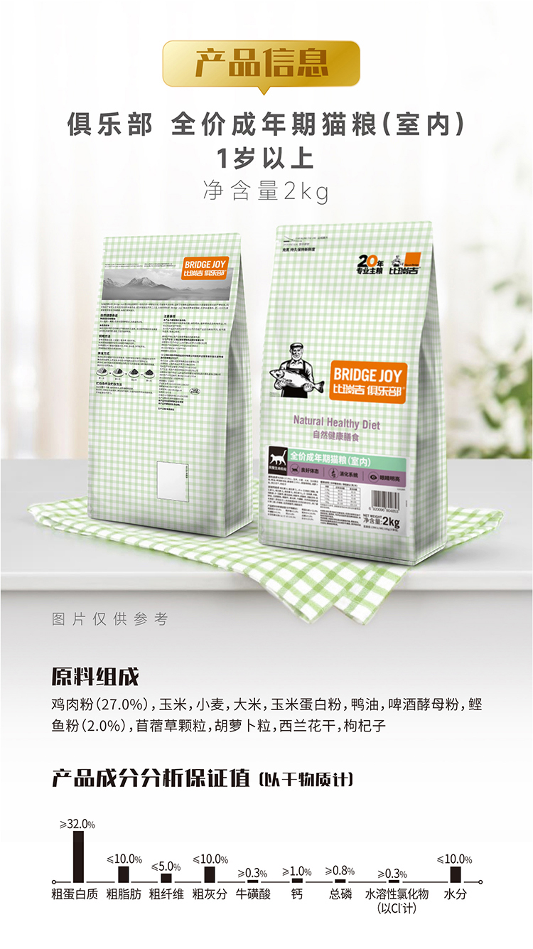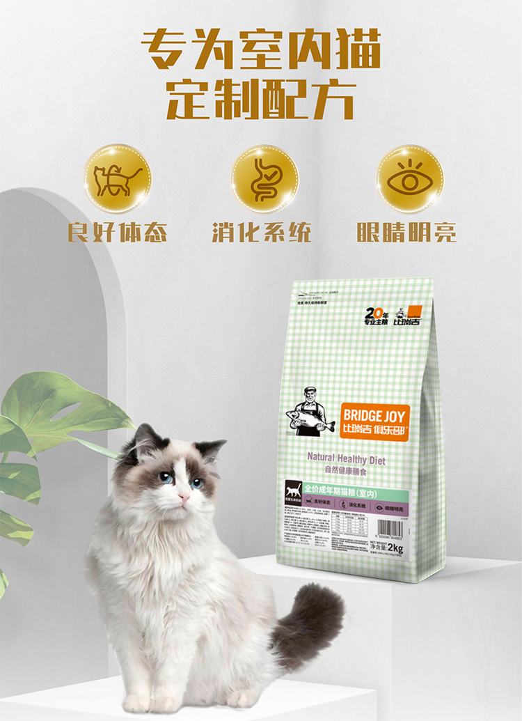 比瑞吉俱乐部 全价成年期室内英短美短布偶暹罗通用成猫粮2kg