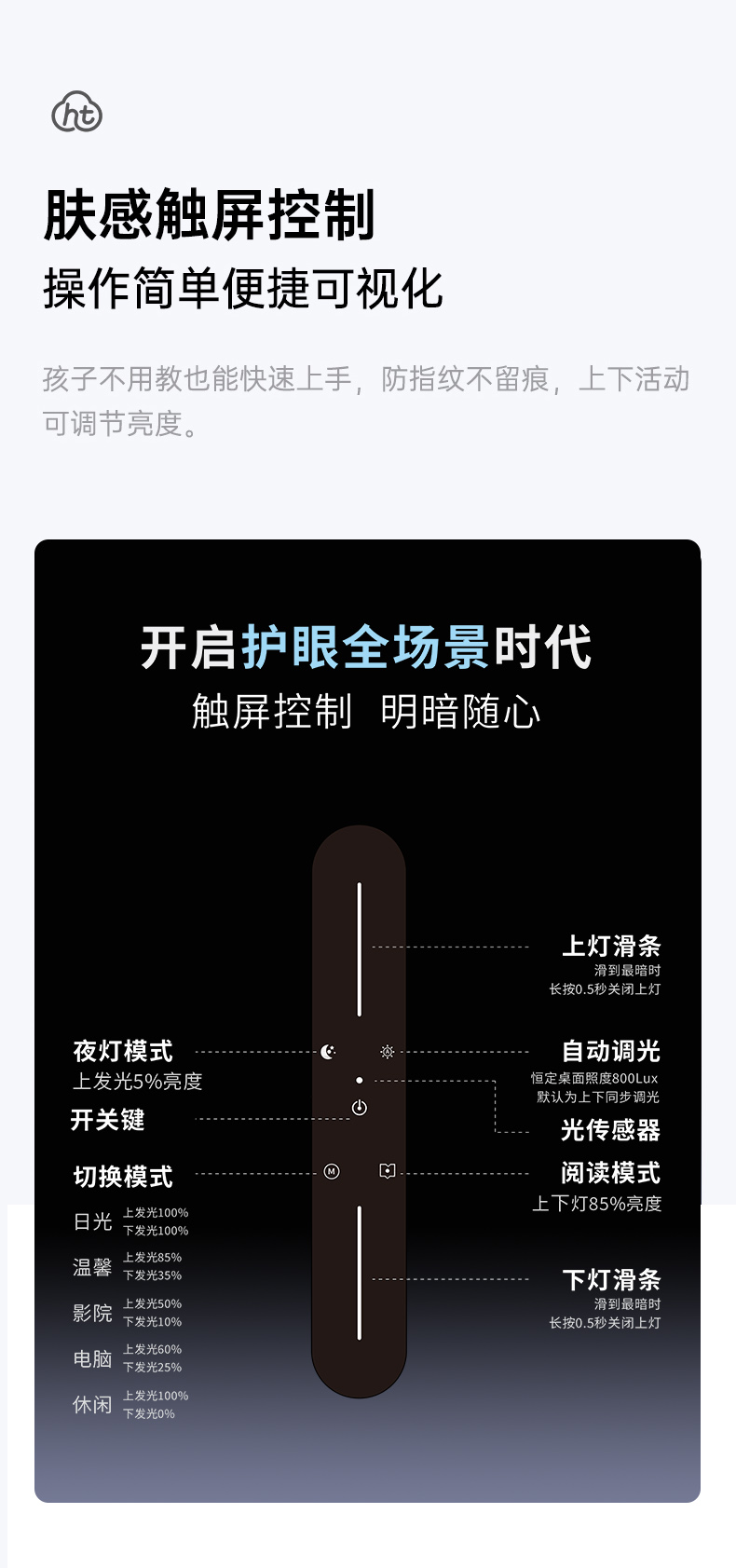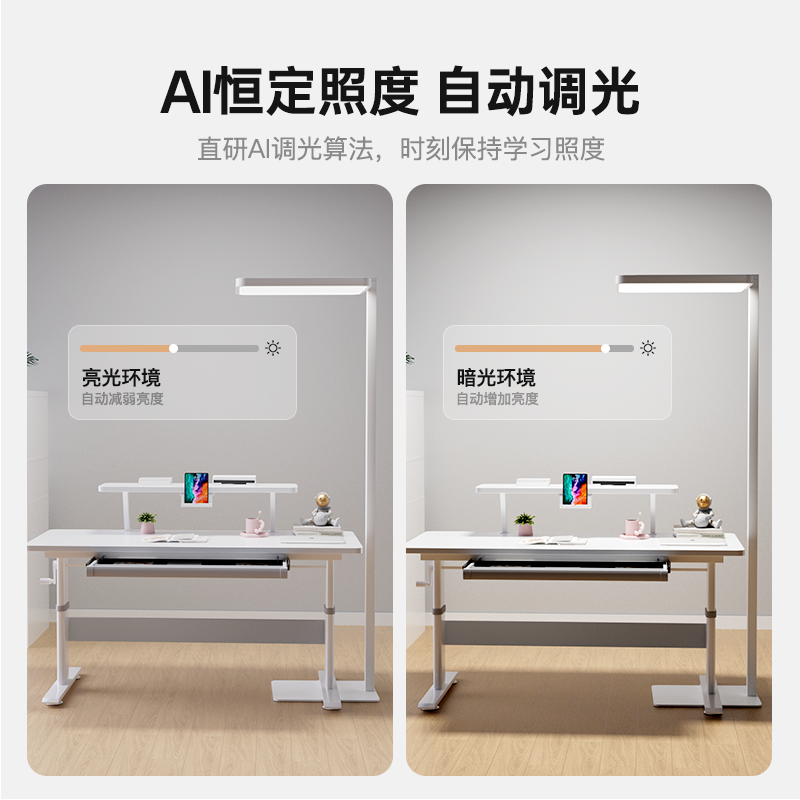 【Hello Tree 护眼大/小路灯】AI恒定照度,自动调光!多重防眩晕结构,光线均匀,柔光不刺眼!肤感触屏控制,操作简单便捷可视化!