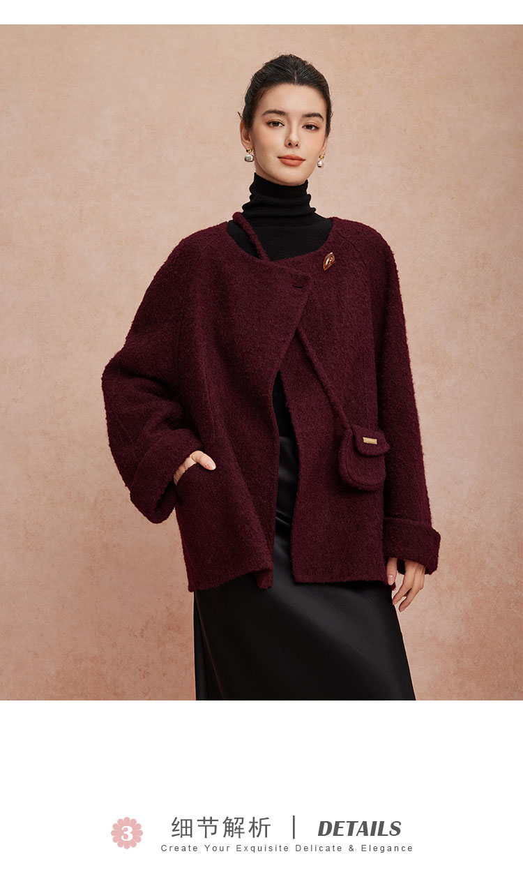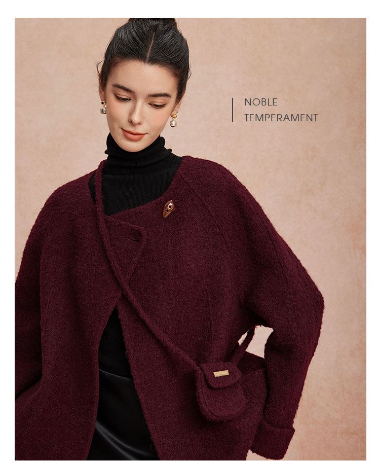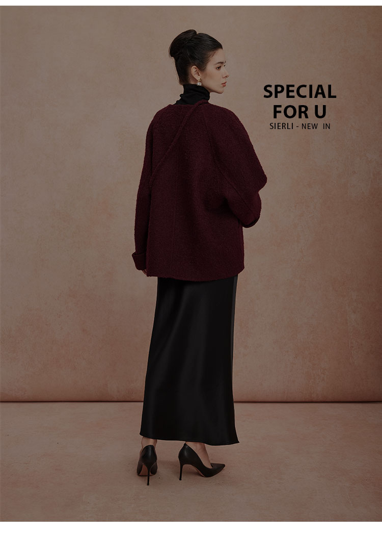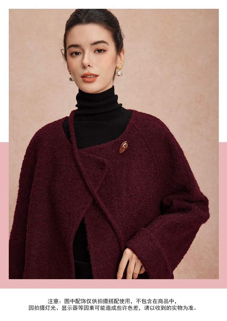 QH910斯尔丽25新款含苏力羊毛颗粒质感宽松斗篷感配同面料时尚羊毛大衣
