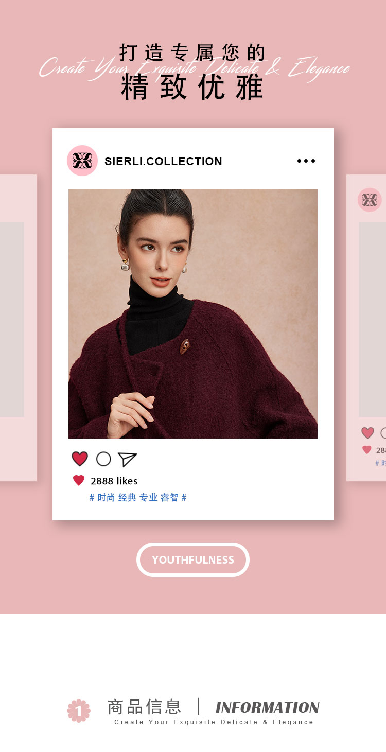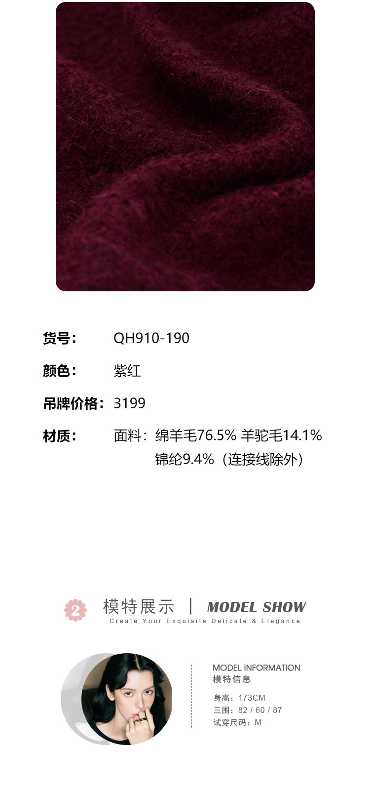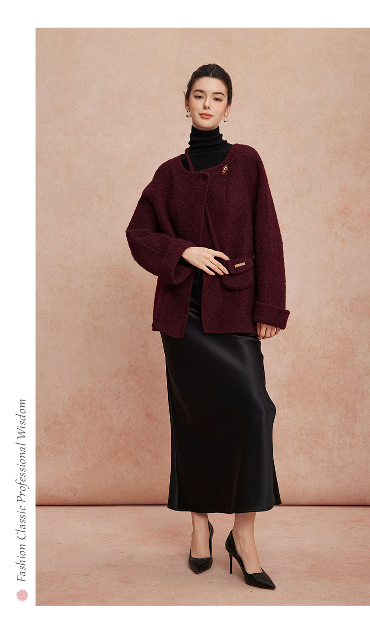 QH910斯尔丽25新款含苏力羊毛颗粒质感宽松斗篷感配同面料时尚羊毛大衣