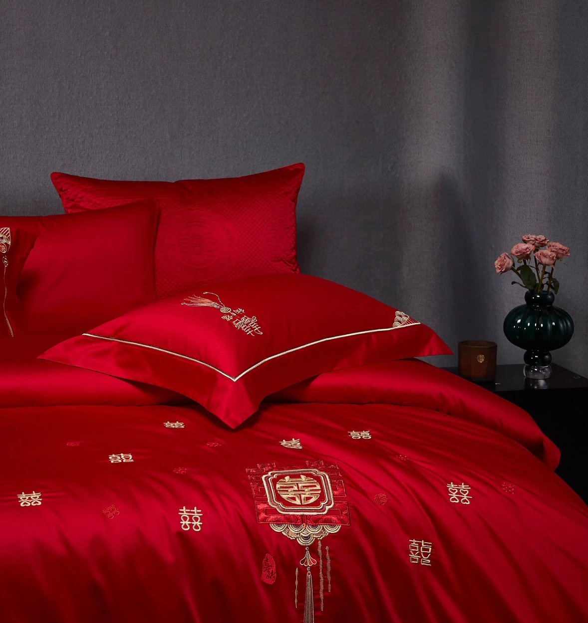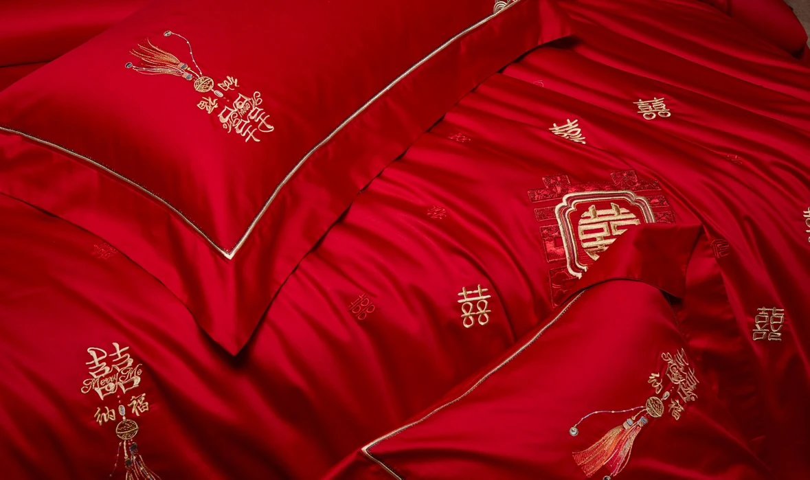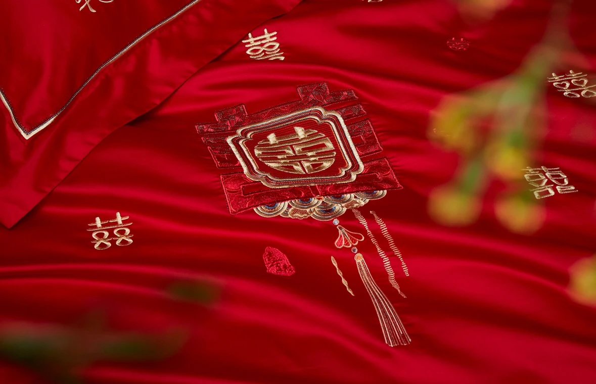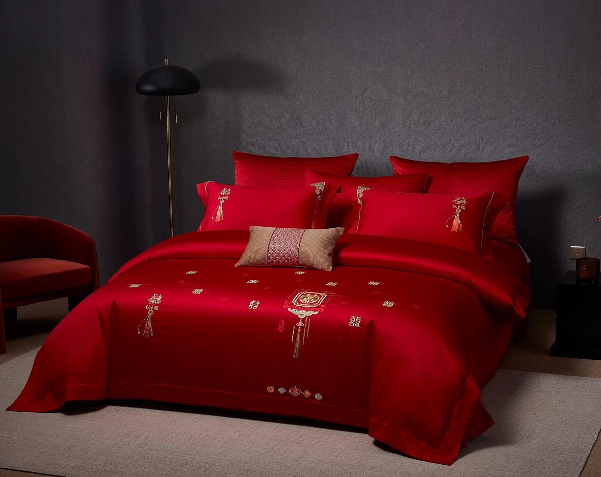 【高端婚庆】 双喜刺绣80支新疆长绒棉 婚礼四件套