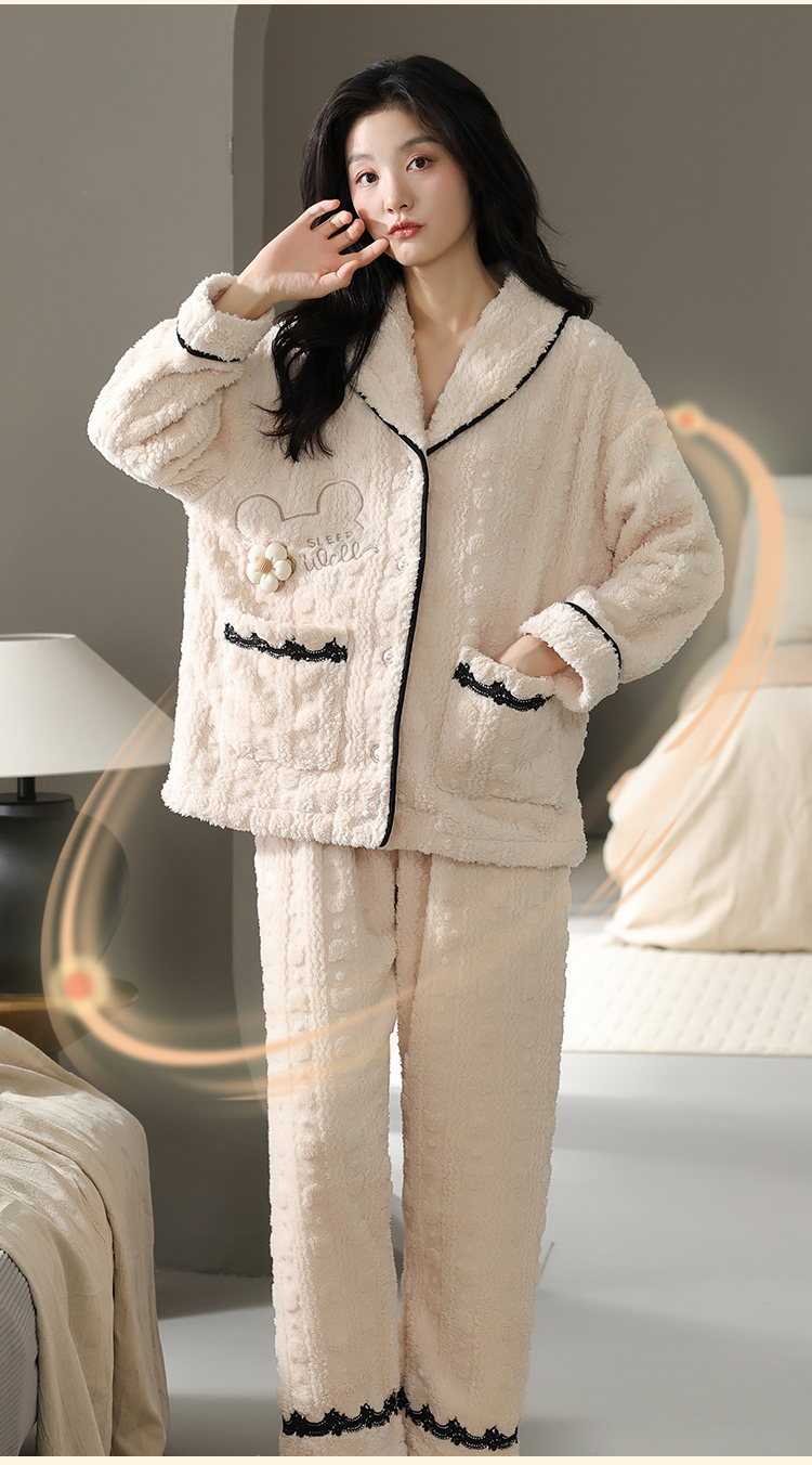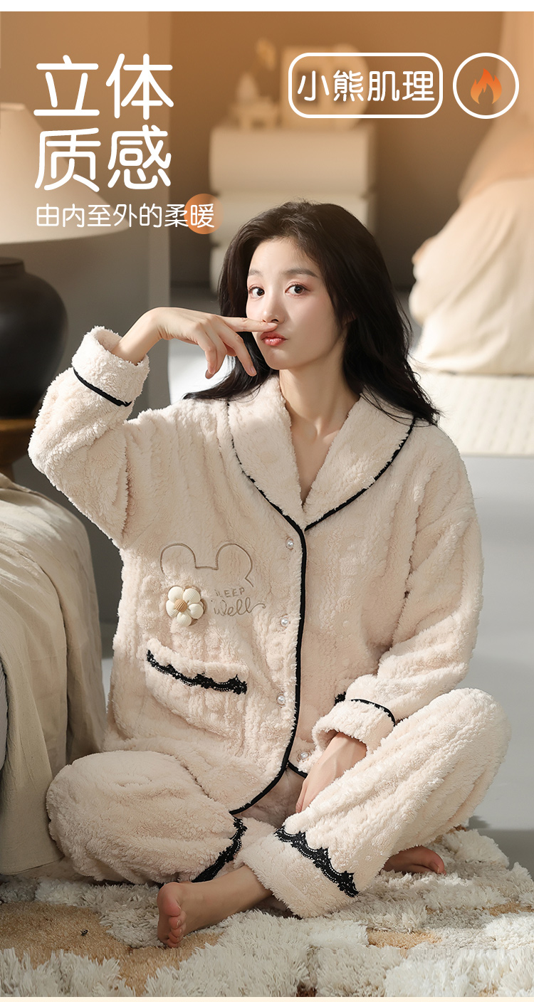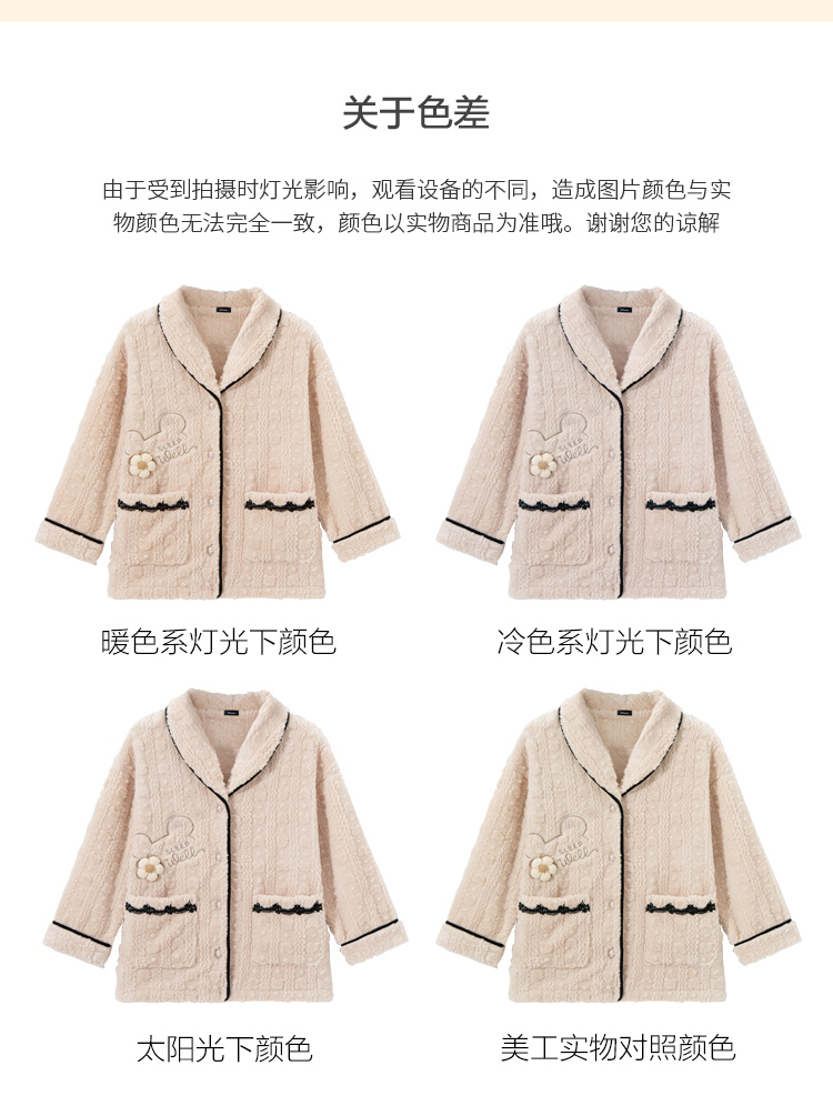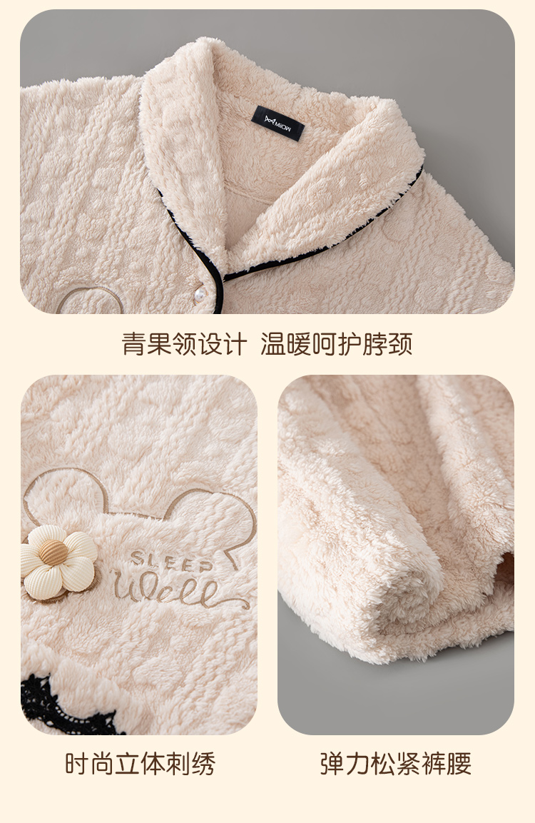 【提花暖绒】【猫人】【M-XXL】女士秋冬加绒家居服睡衣套装
