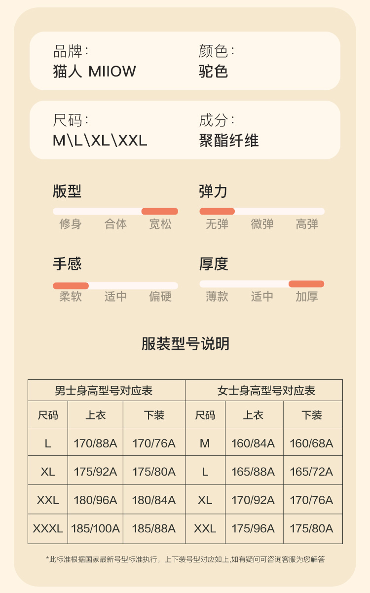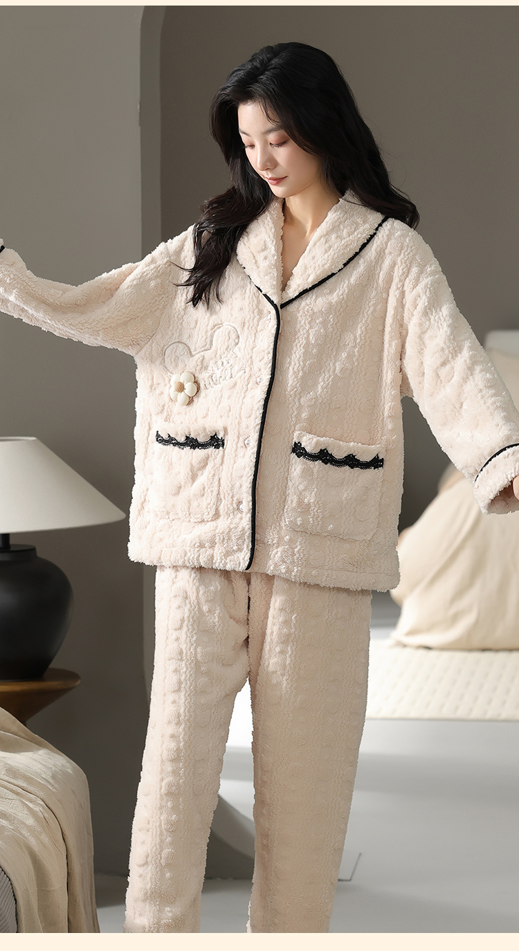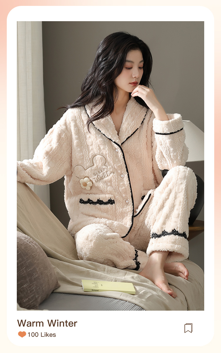 【提花暖绒】【猫人】【M-XXL】女士秋冬加绒家居服睡衣套装