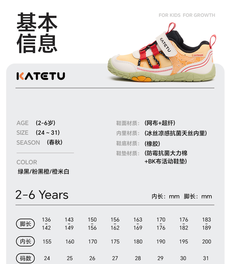 卡特兔童鞋户外儿童2026年春季宝宝女童鞋子防滑男童透气运动鞋