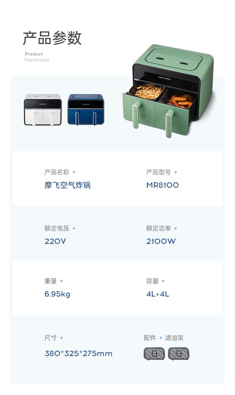 摩飞空气炸锅双拼8升MR8100-XJ