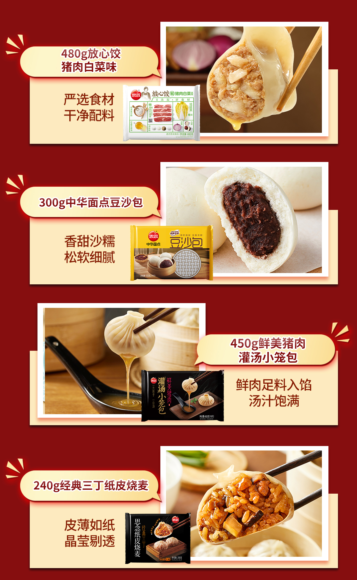思念手抓饼 早餐、晚餐必备, 2包450g原味手抓饼+2包450g葱香口味手抓饼