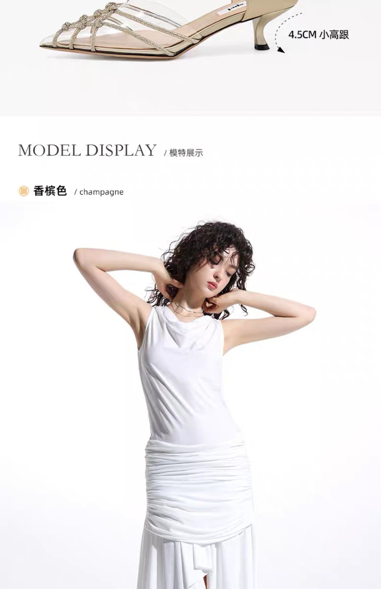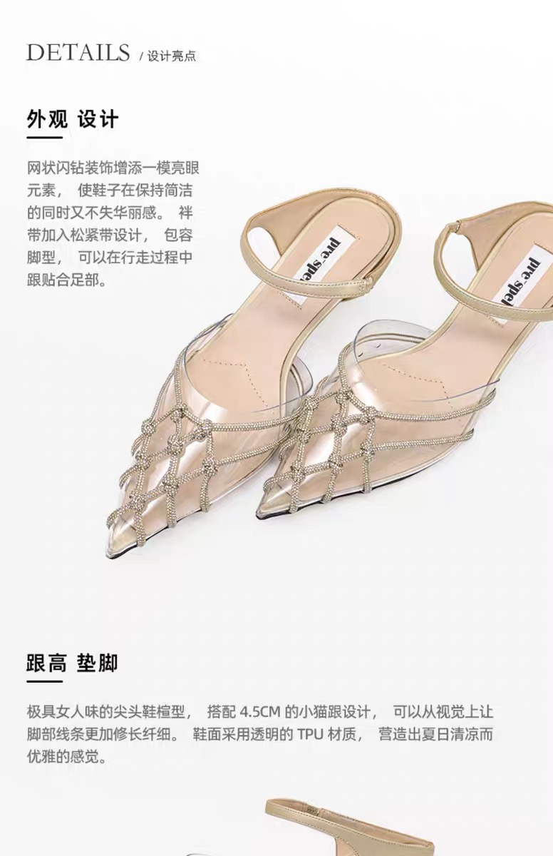 尖头闪钻TPU细带穆勒鞋