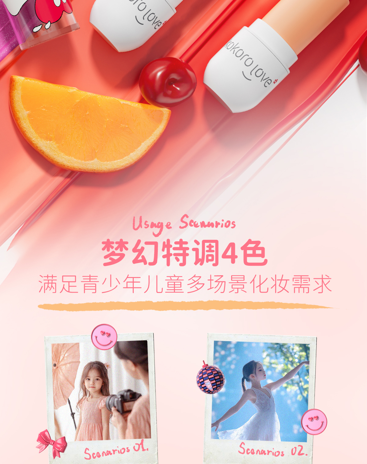 kokoro love初葆儿童口红指甲油腮红多用盘妆容 3岁+