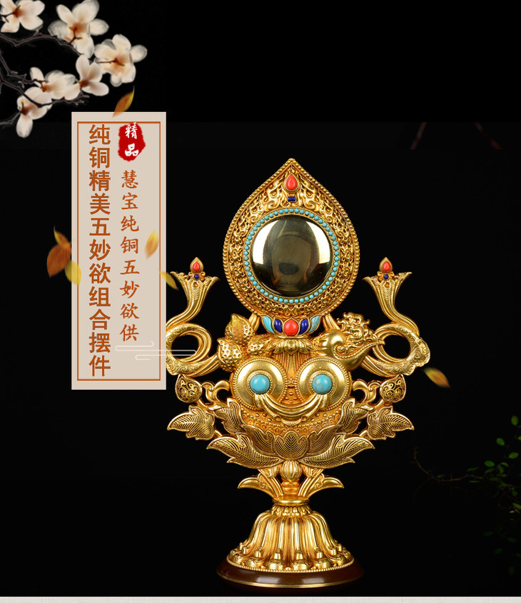慧宝佛具五妙欲供品组合纯铜祈福供养摆件佛堂供品显密宗用品供具