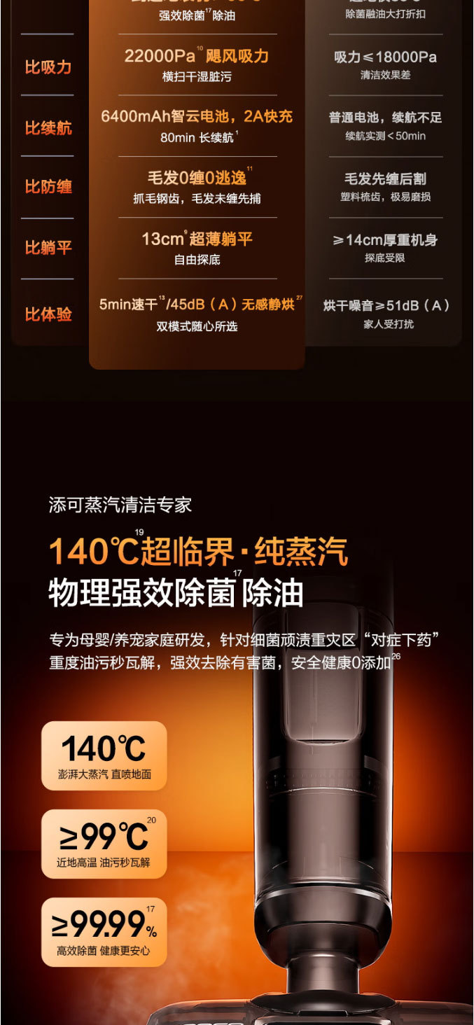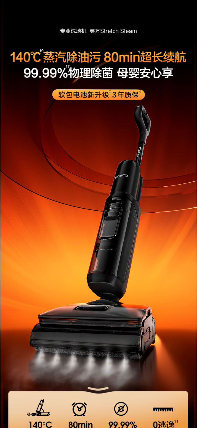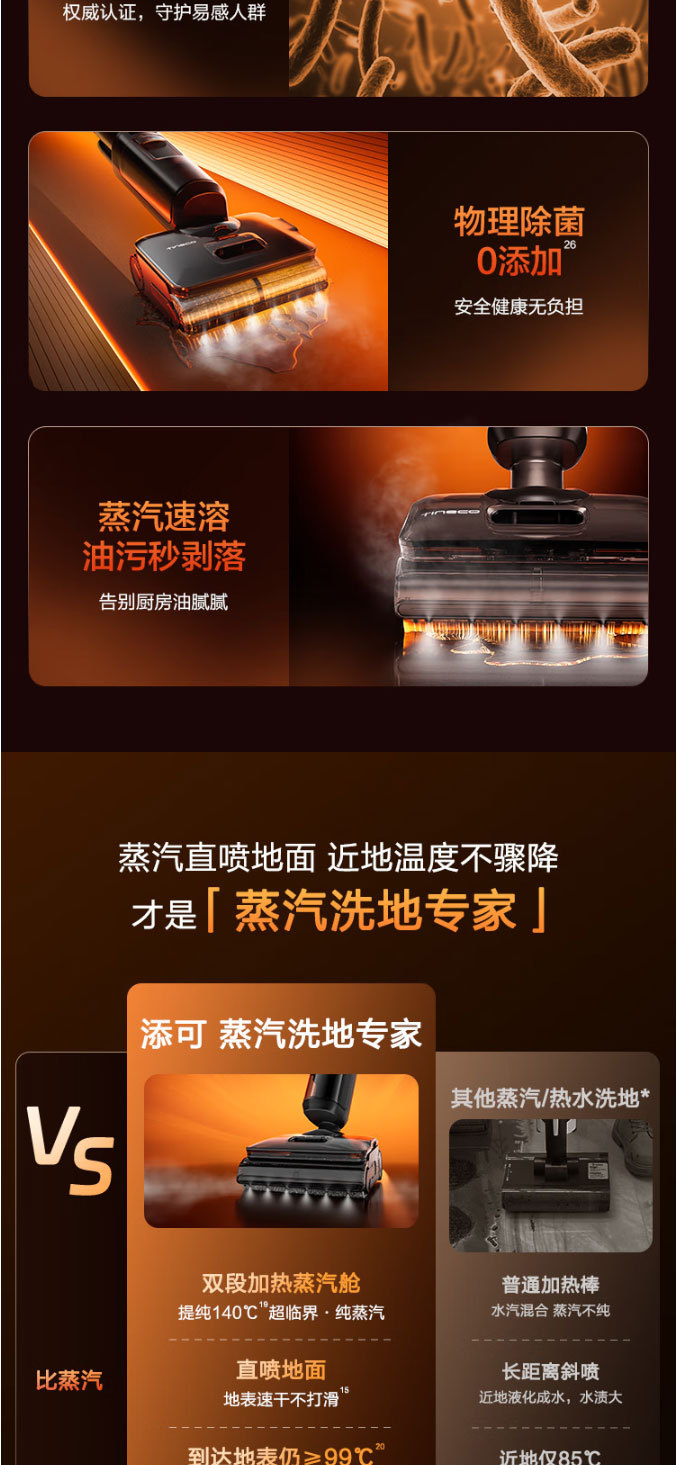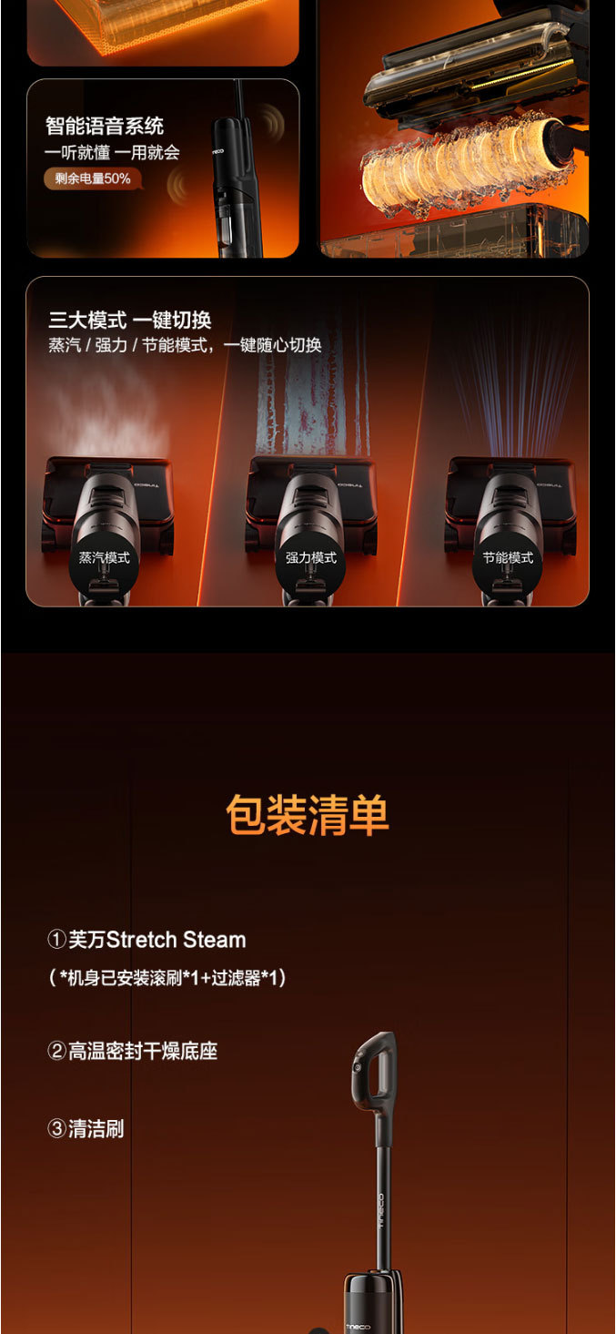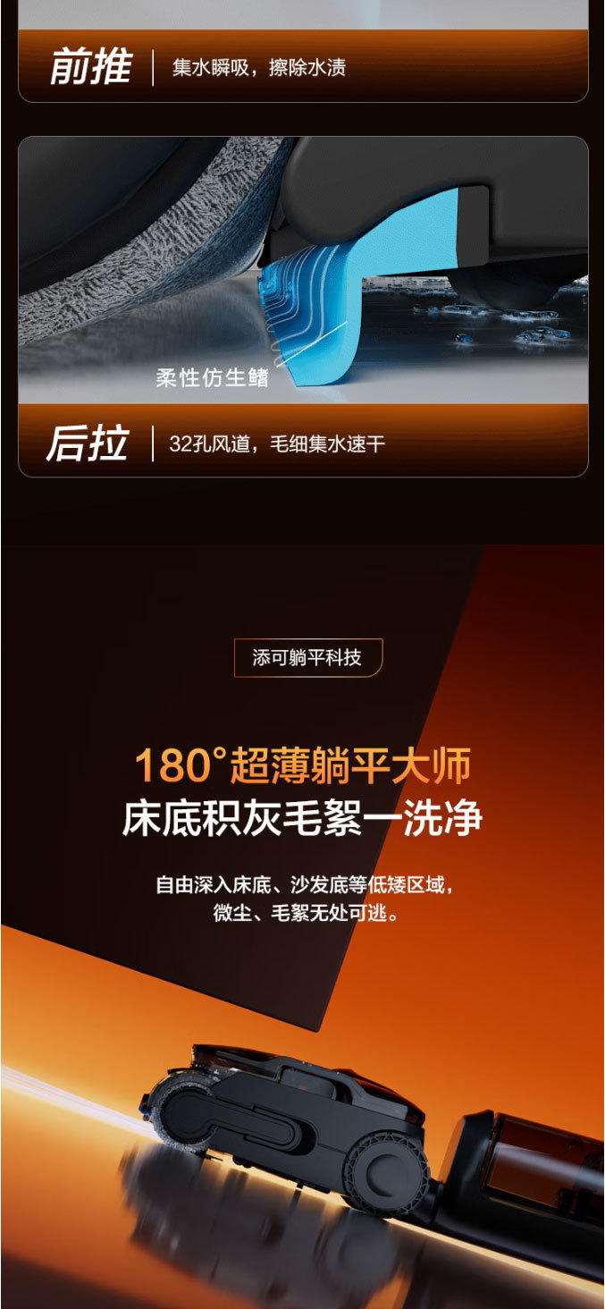 添可芙万StretchSteam蒸汽躺平洗地机 0缠毛吸拖一体自动清洗拖地