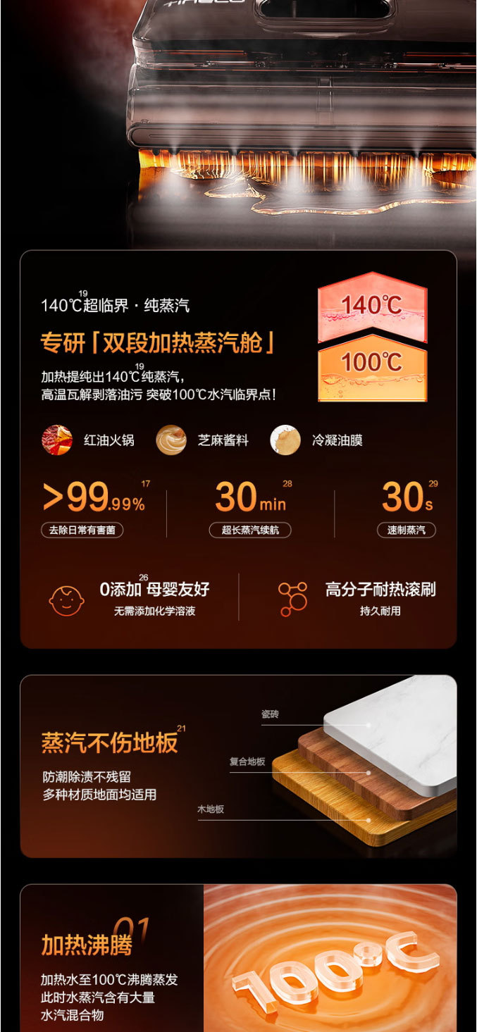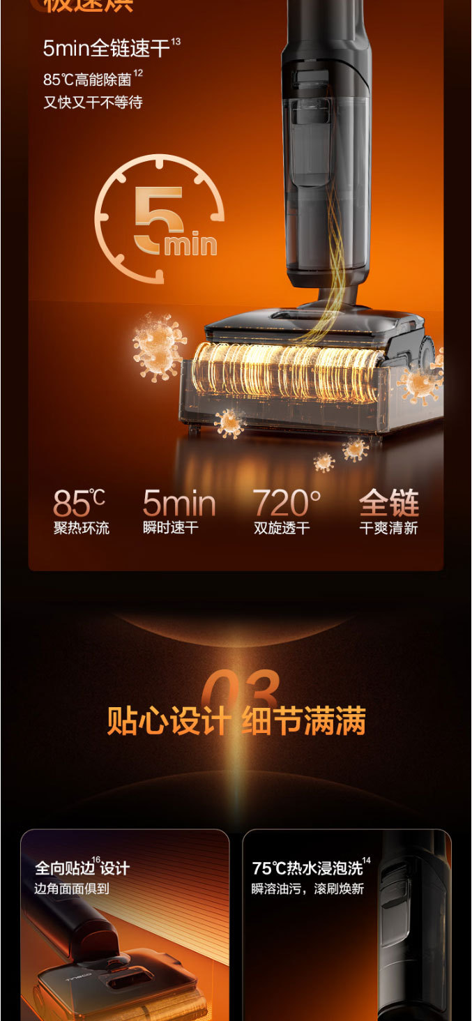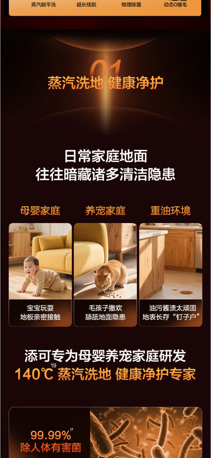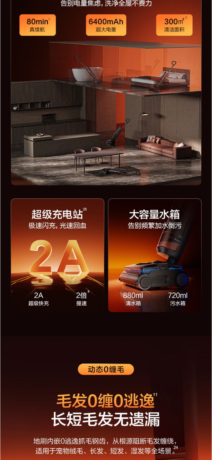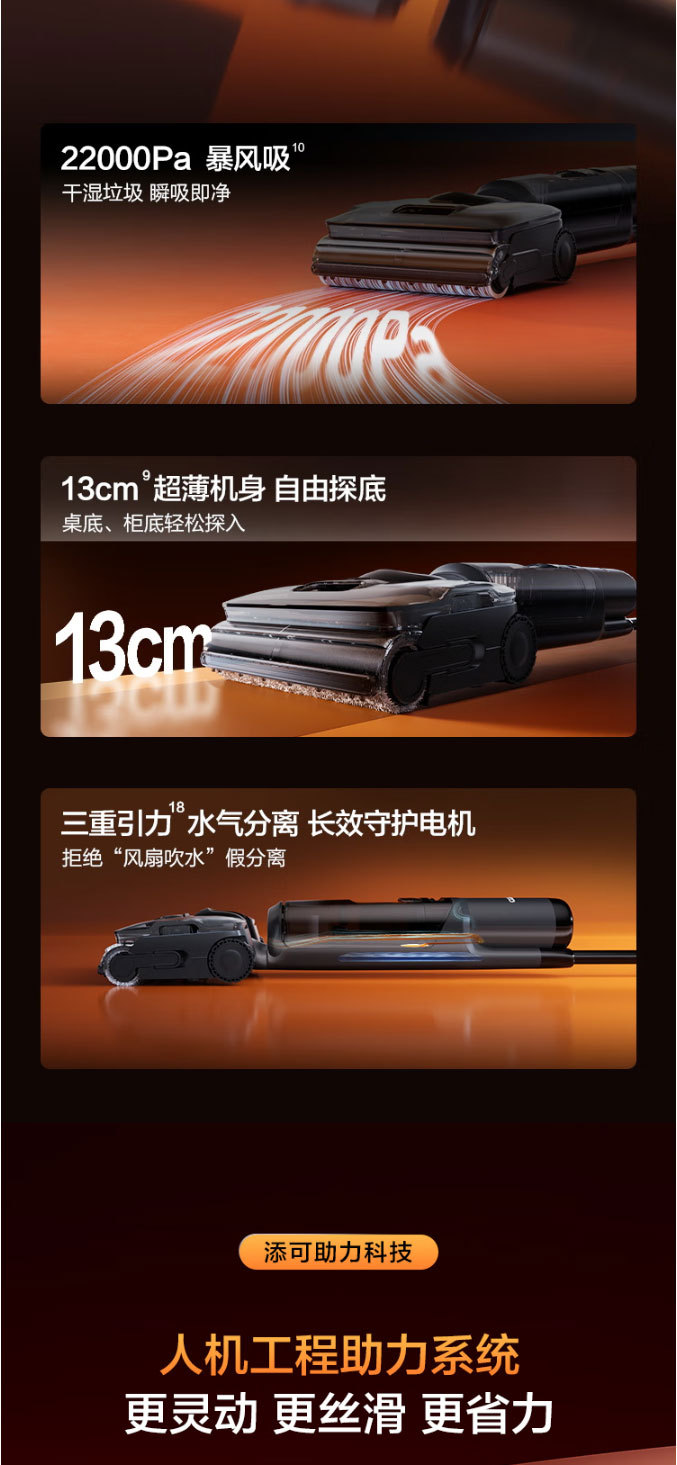 添可芙万StretchSteam蒸汽躺平洗地机 0缠毛吸拖一体自动清洗拖地