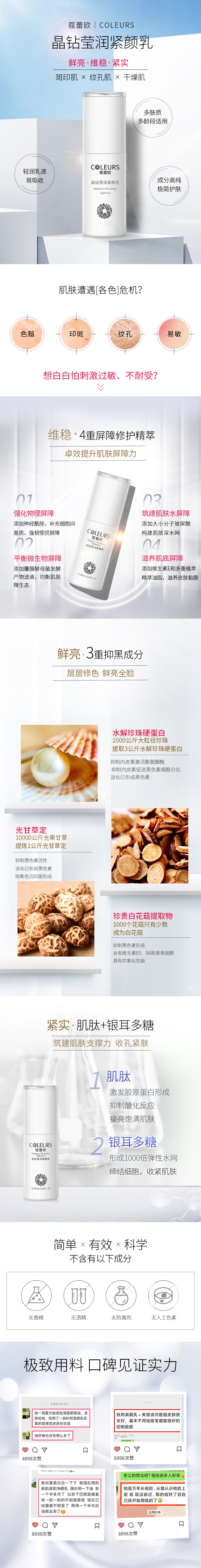 晶钻莹润紧颜乳:经典乳液 全能型选手 不挑皮肤使用 修护保湿紧肤亮颜 紧致毛孔 任性配方的典型代表