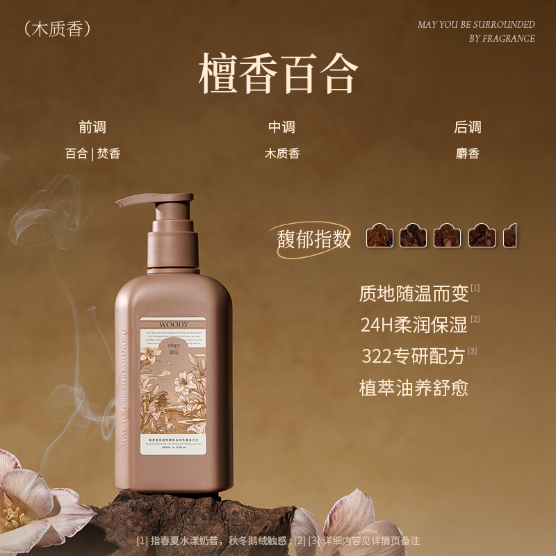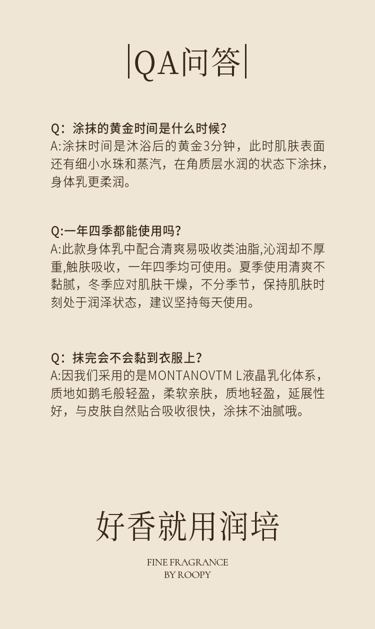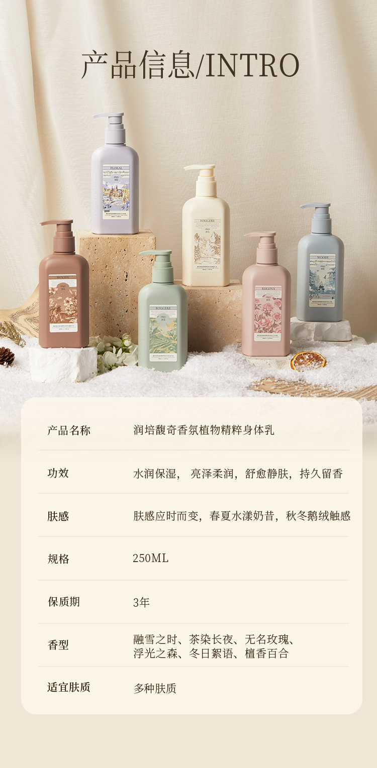 roopy润培 馥奇香氛植物精粹身体乳第三代250ml 日初青橙 柑橘调/ 檀香百合 木质调/无名玫瑰 花香调 轻盈润护 面护油养 亲肤透润