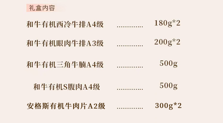 天莱香牛 和牛有机牛肉礼盒2.36kg【CA】【实物&礼品卡】