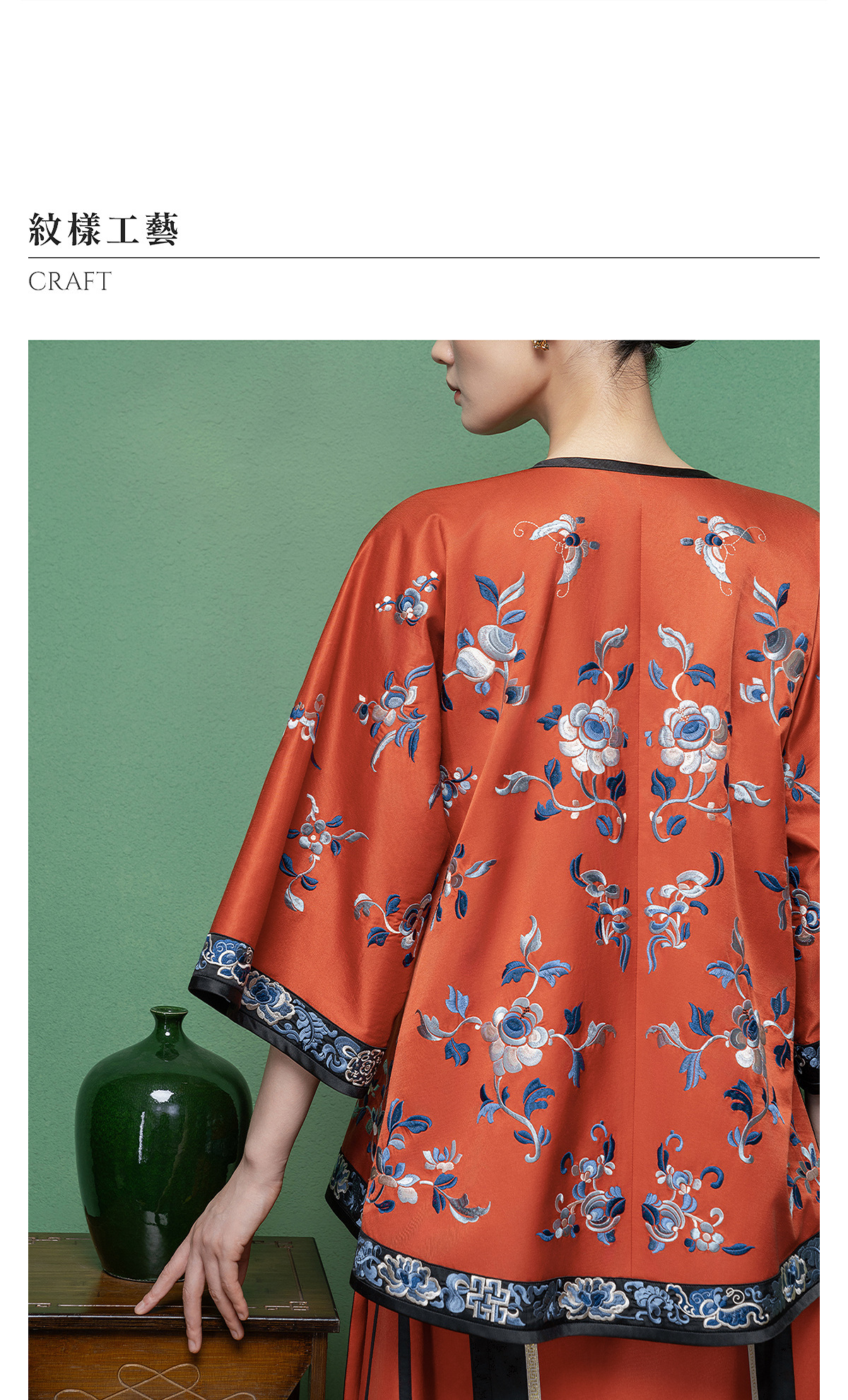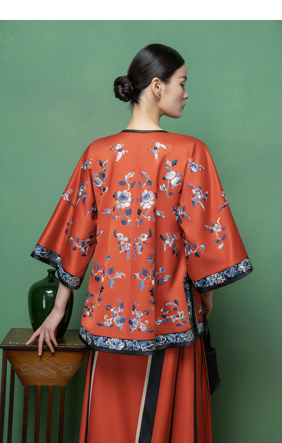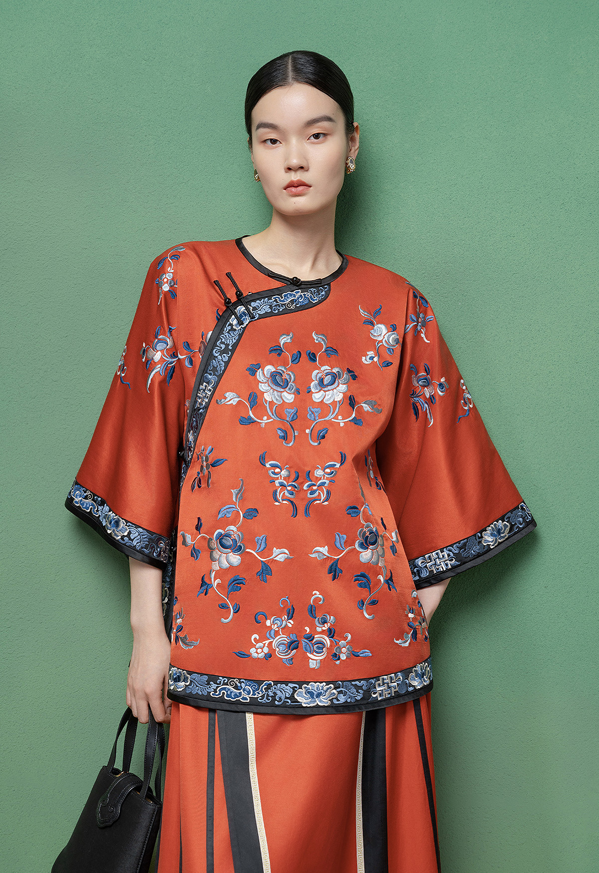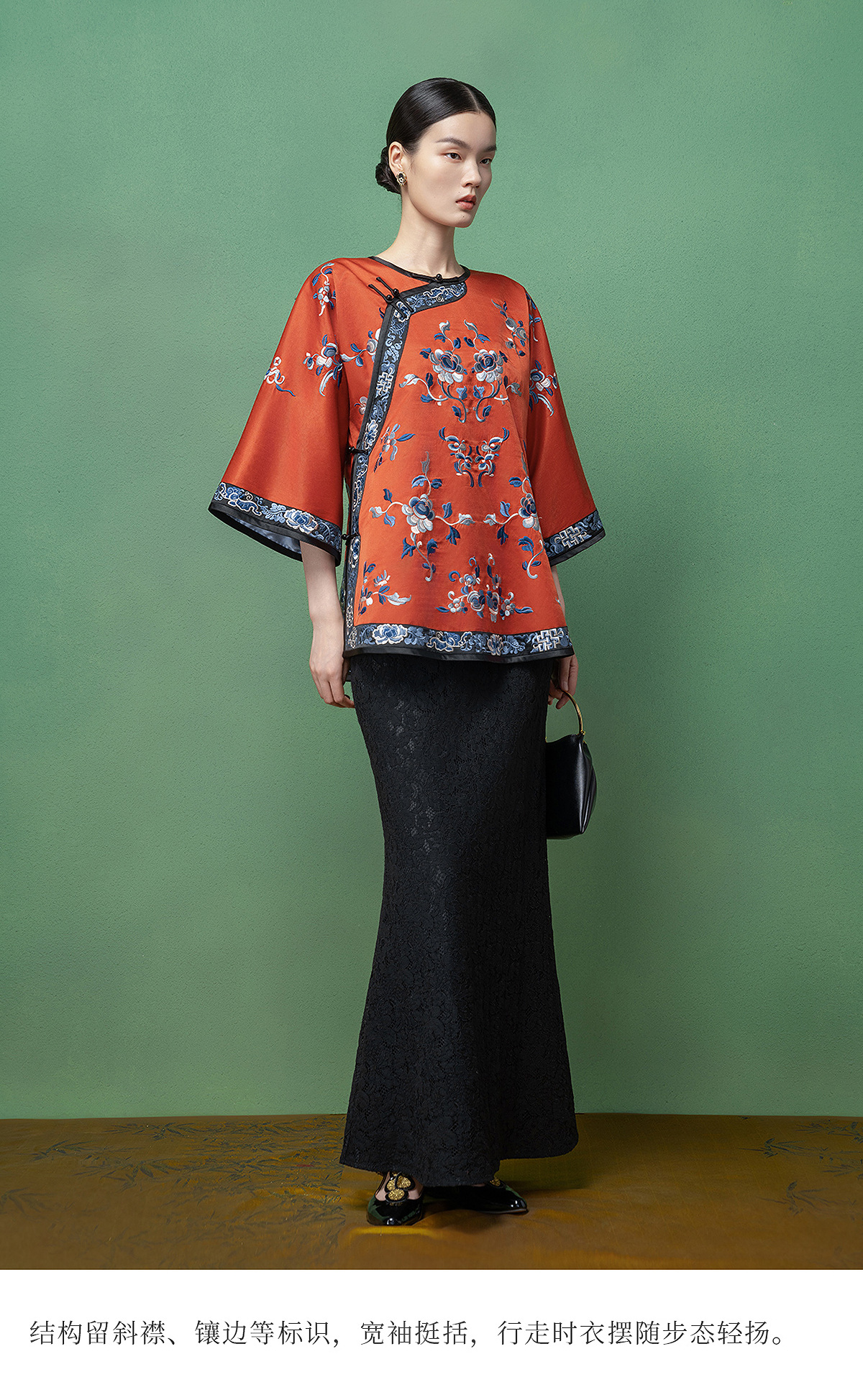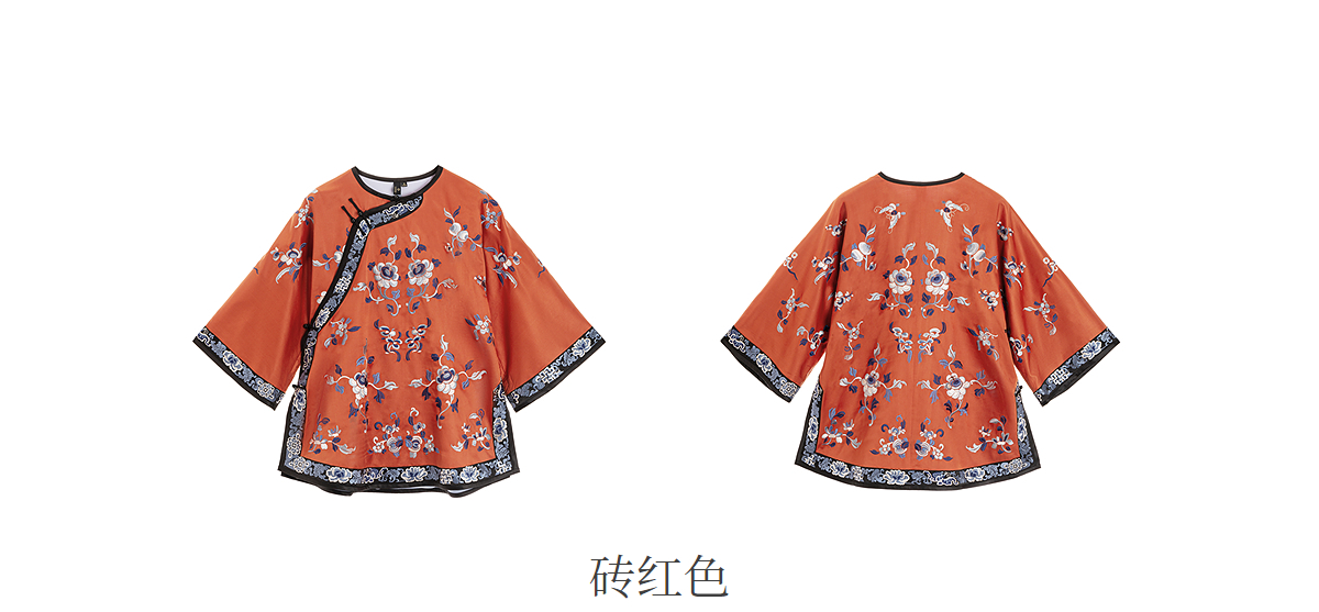 【林栖设计小店】【现货】拍行古董复现|丝棉缎绣花砖红色中式宽松氅衣1961100