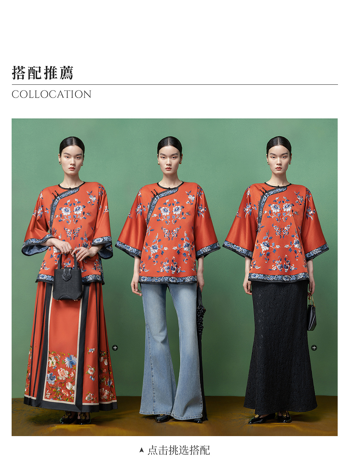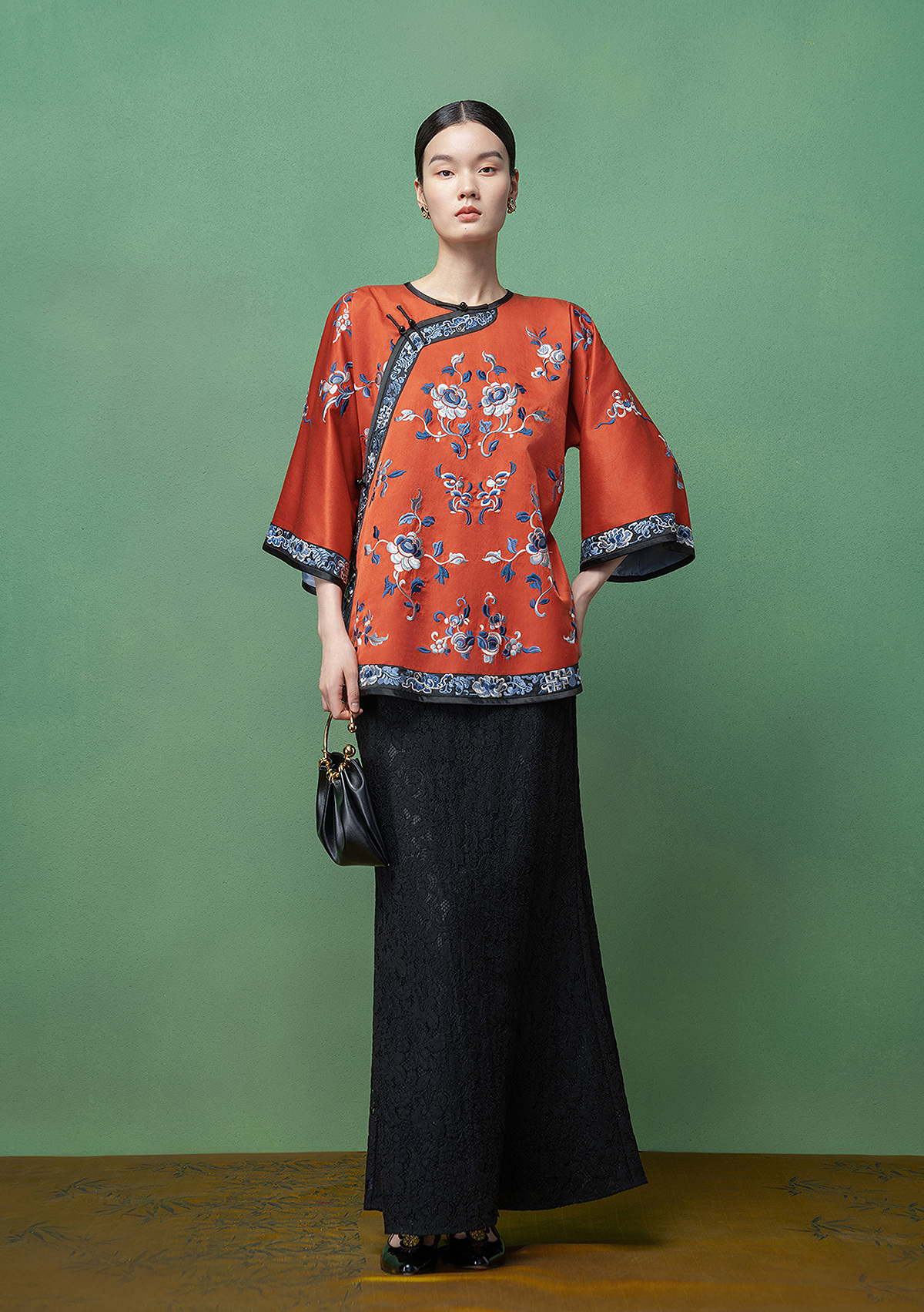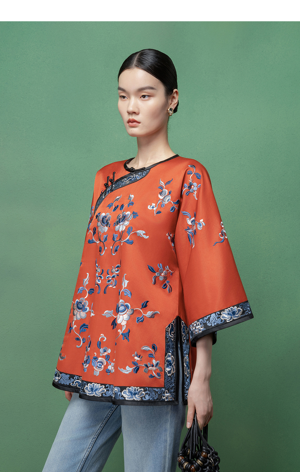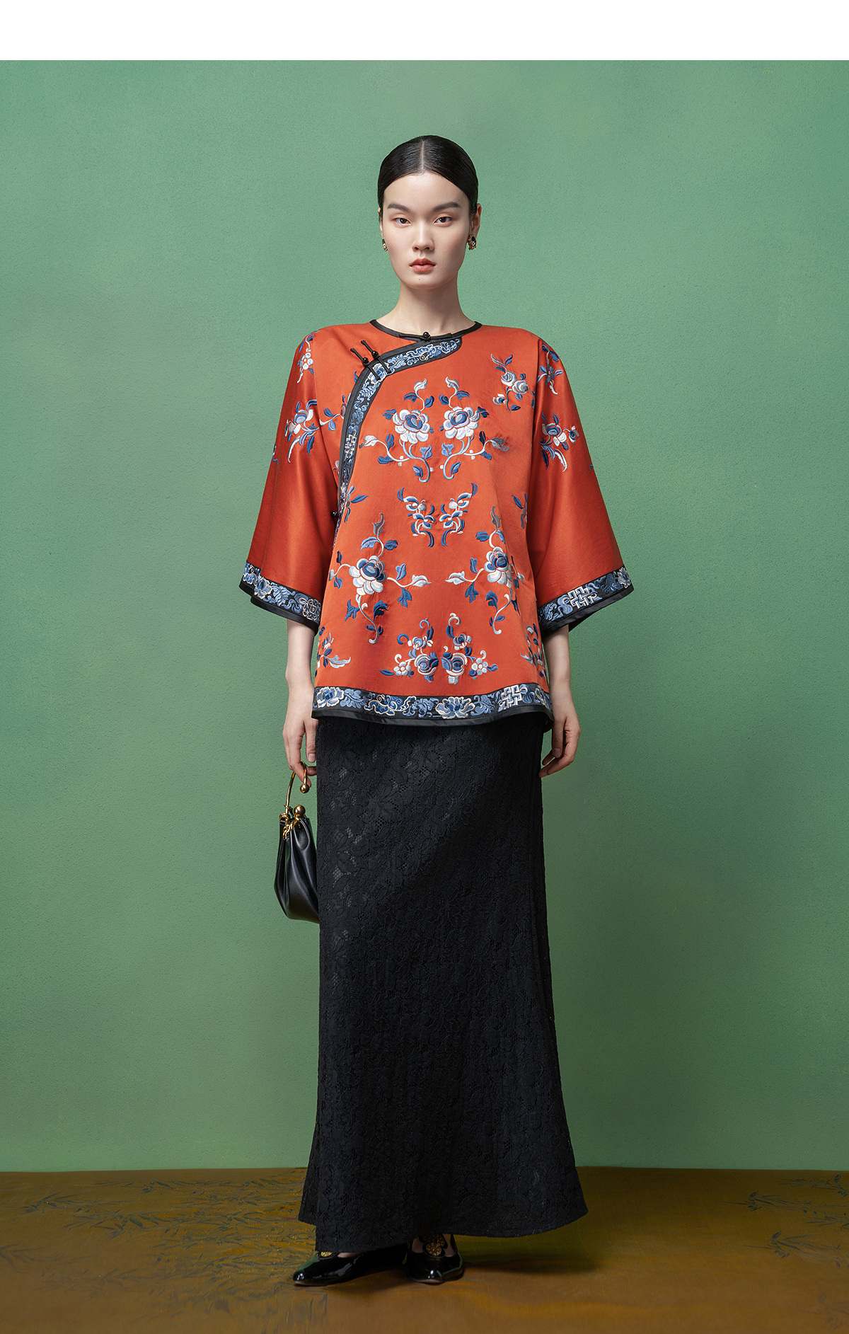 【林栖设计小店】【现货】拍行古董复现|丝棉缎绣花砖红色中式宽松氅衣1961100