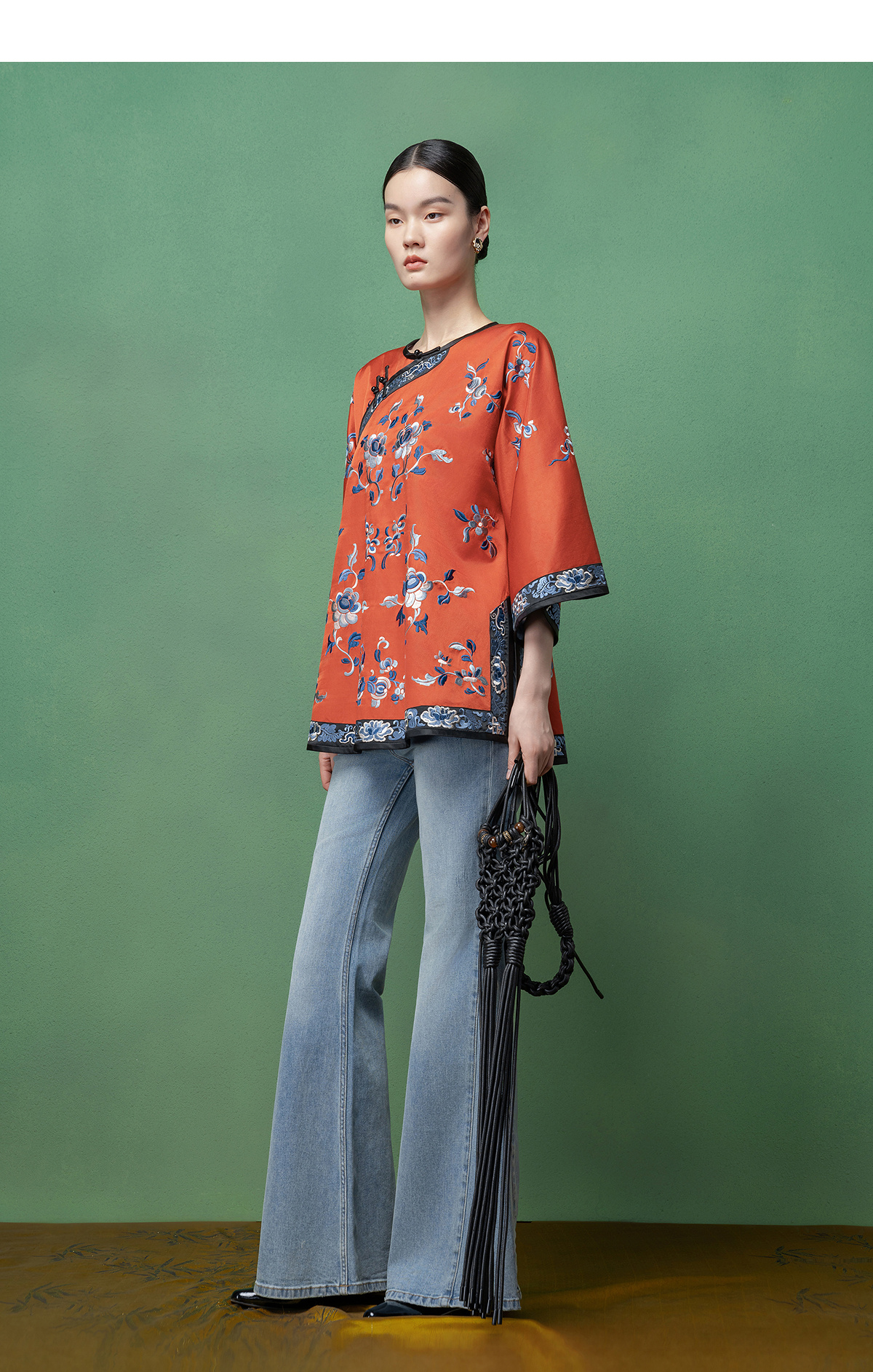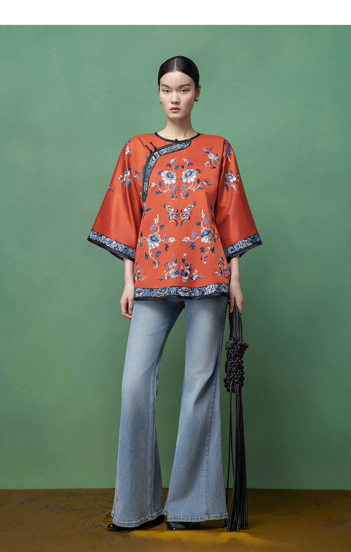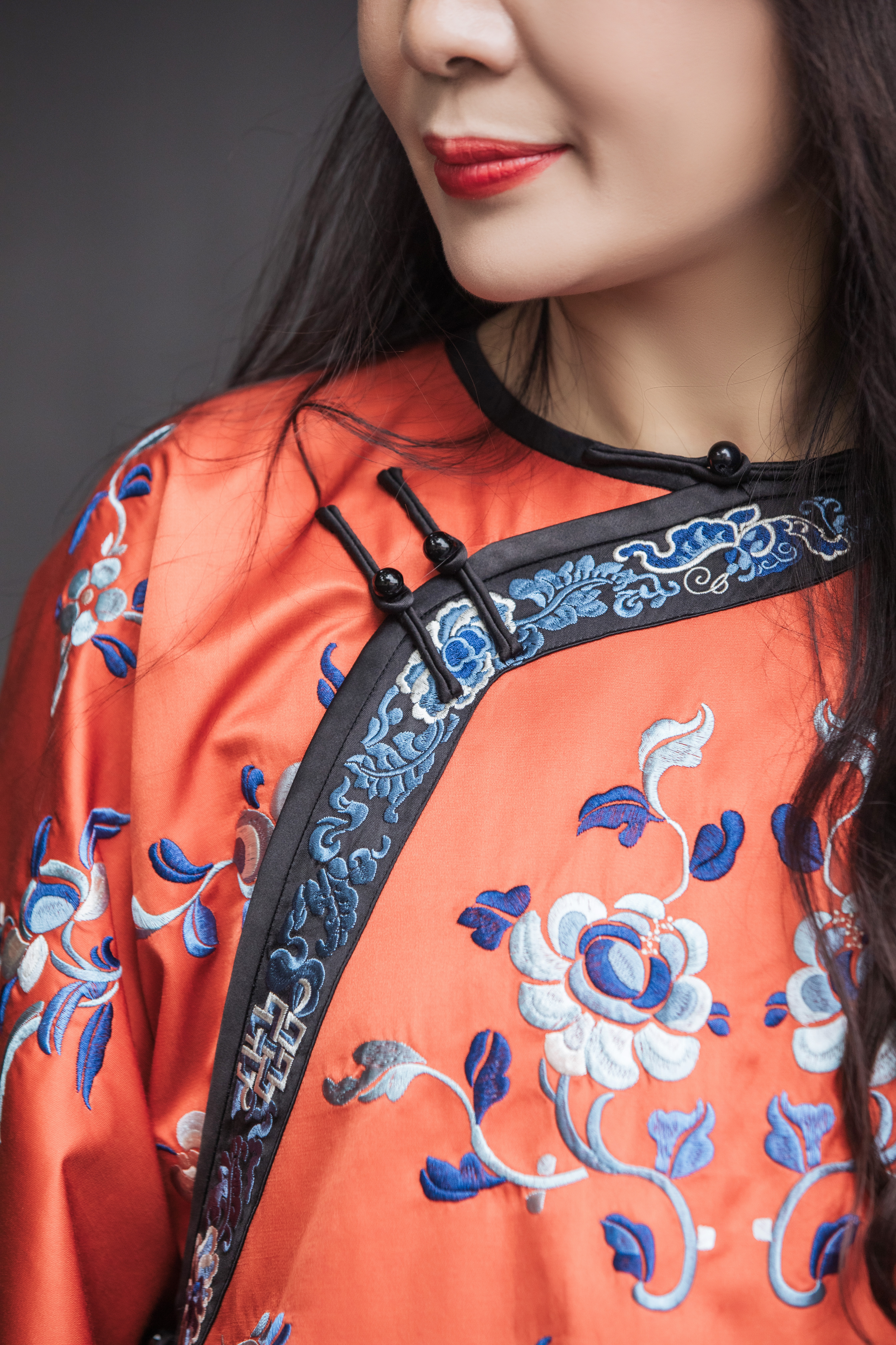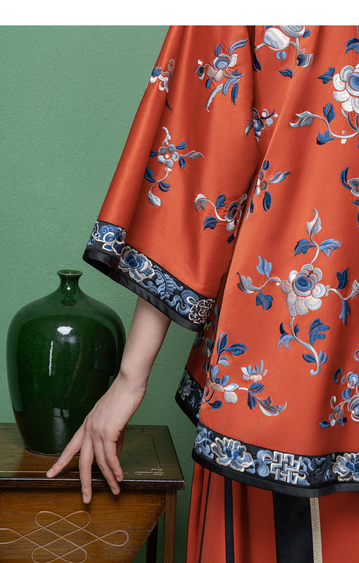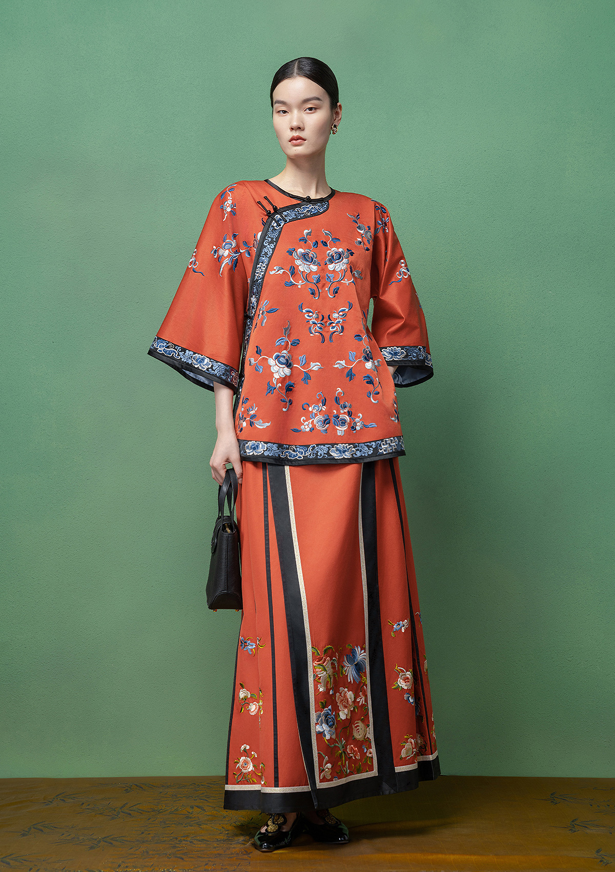 【林栖设计小店】【现货】拍行古董复现|丝棉缎绣花砖红色中式宽松氅衣1961100