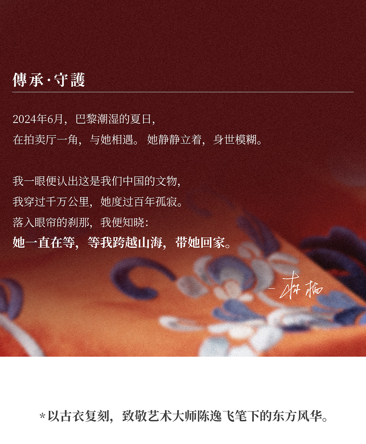 - hi~我是林栖 很高兴你也在关注和热爱着传统手工艺 我想让你穿上 用传统手工艺做出的、不输给国外奢侈品的衣服
