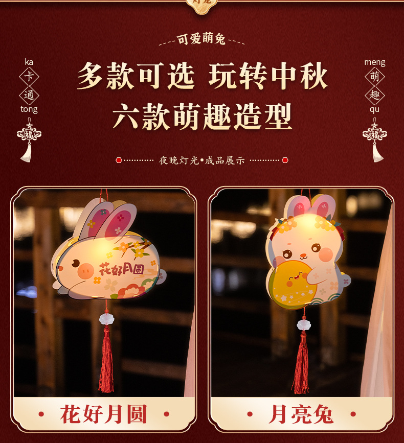 【给孩子准备一份礼物吧】灯笼卡通兔子花灯儿童diy手工手提发光节古风灯笼,发光设计,让灯笼更加绚丽多彩。为您的节增添欢乐和喜庆❗️新年礼盒年货礼盒
