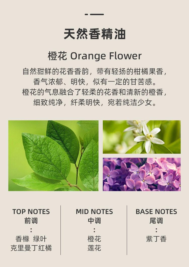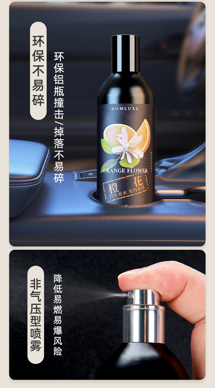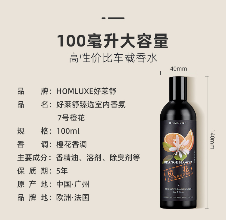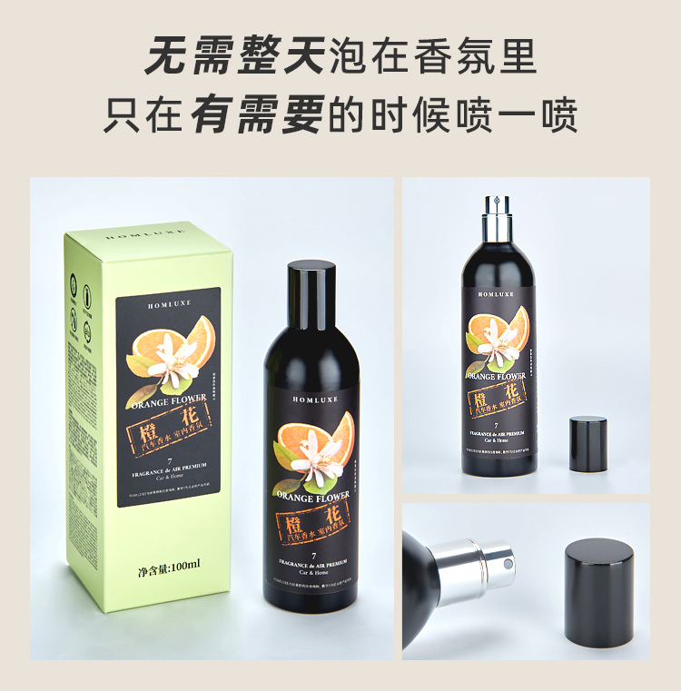 好莱舒汽车香水 无酒精安全除臭车载香水室内香氛车用橙花香味100ml