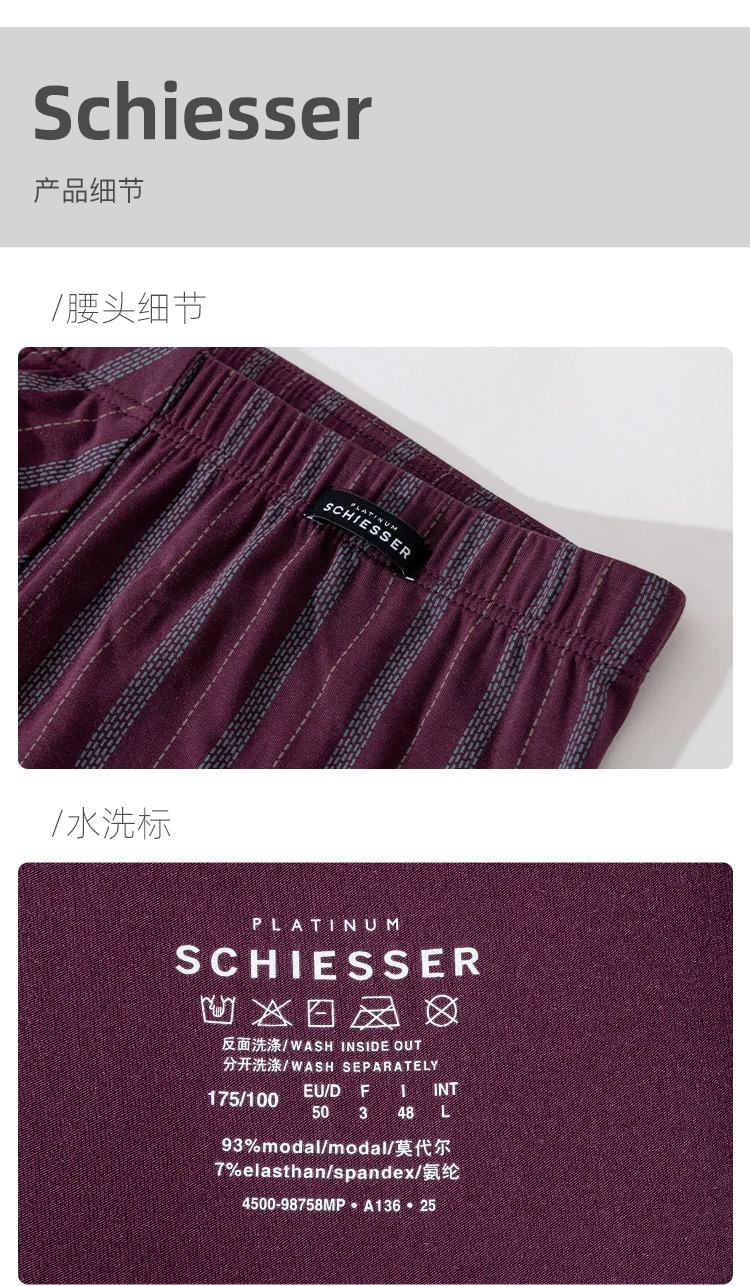 【超细莫代尔】SCHIESSER高端铂雅93%超细莫代尔 7%氨纶 中腰平角小裤180克 99/25790T