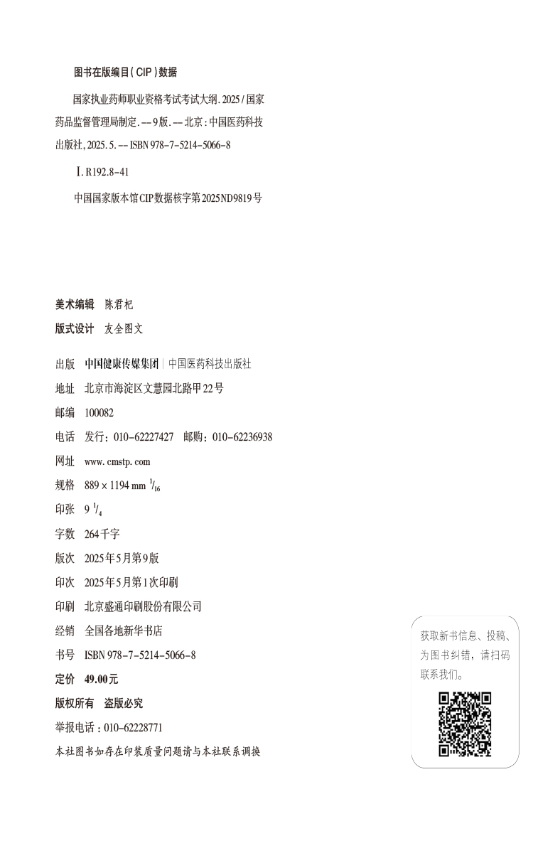 书名:国家执业药师职业资格考试考试大纲(第九版·2025)