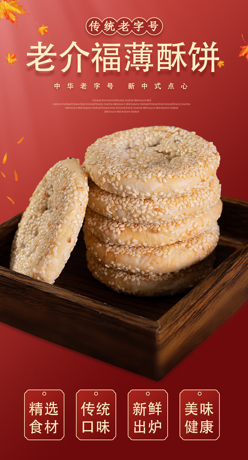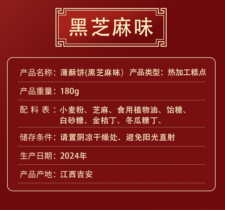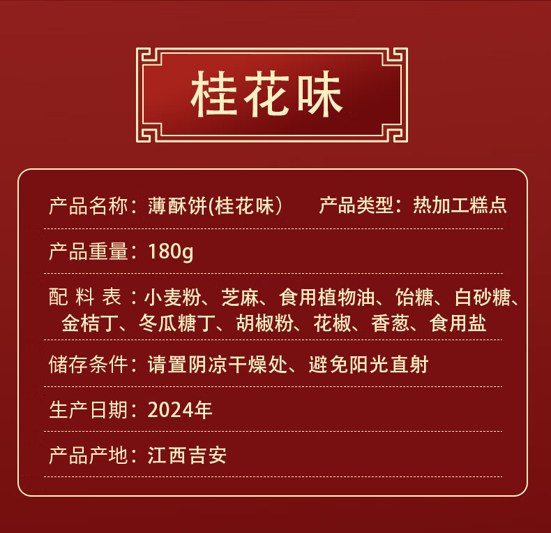 【两山优品】老介福薄酥饼黑桂花味/芝麻味258g