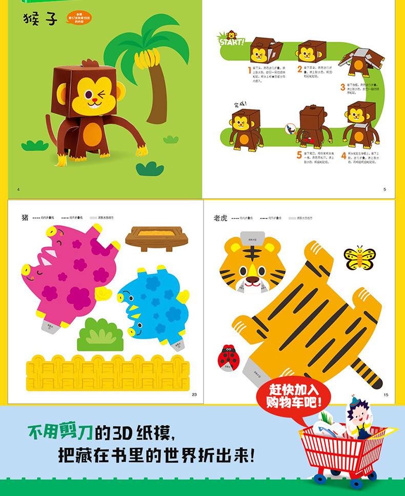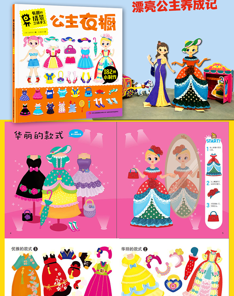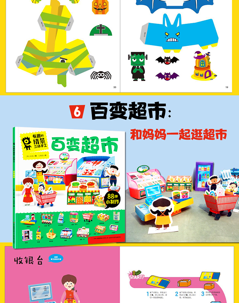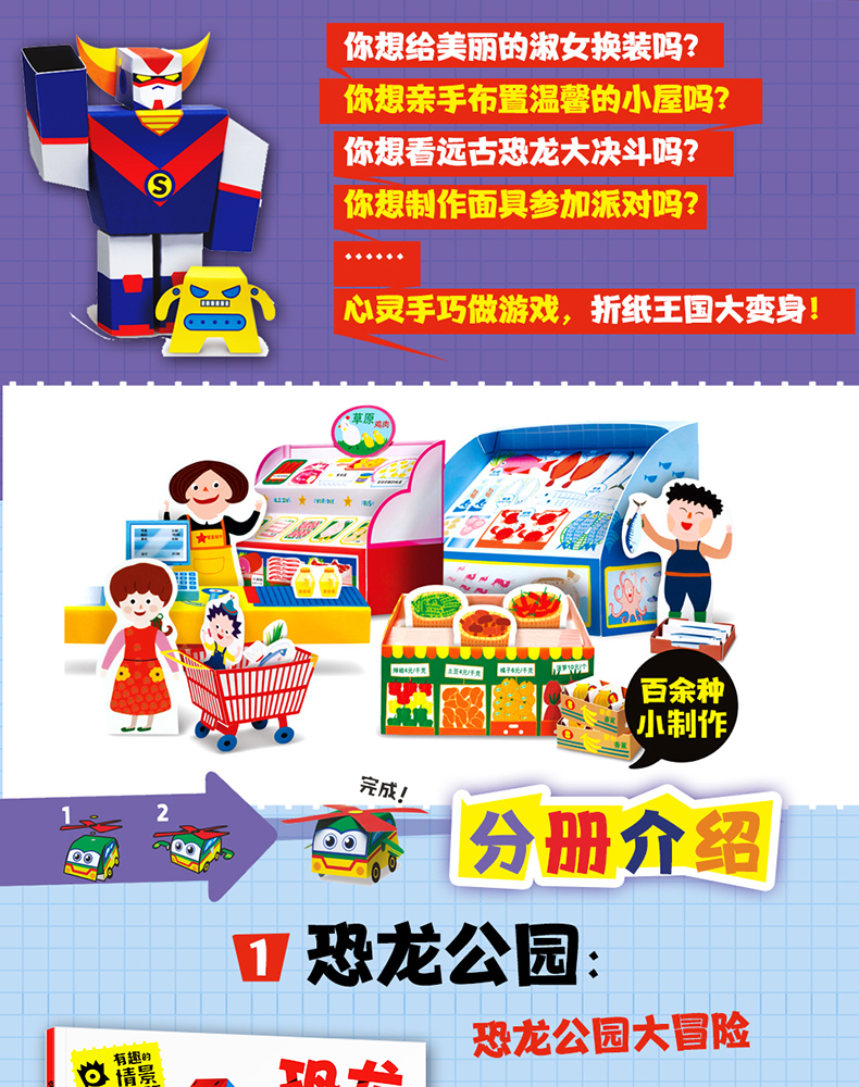 有趣的情景立体手工书10册 3-6-9-12岁儿童创意美术diy纸偶模型制作超萌动物恐龙公主汽车3D小手工男女孩幼儿趣味益智游戏玩具早教