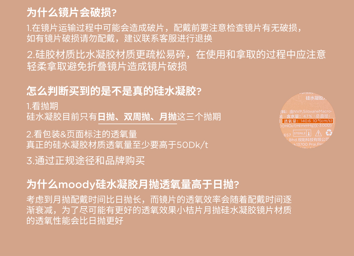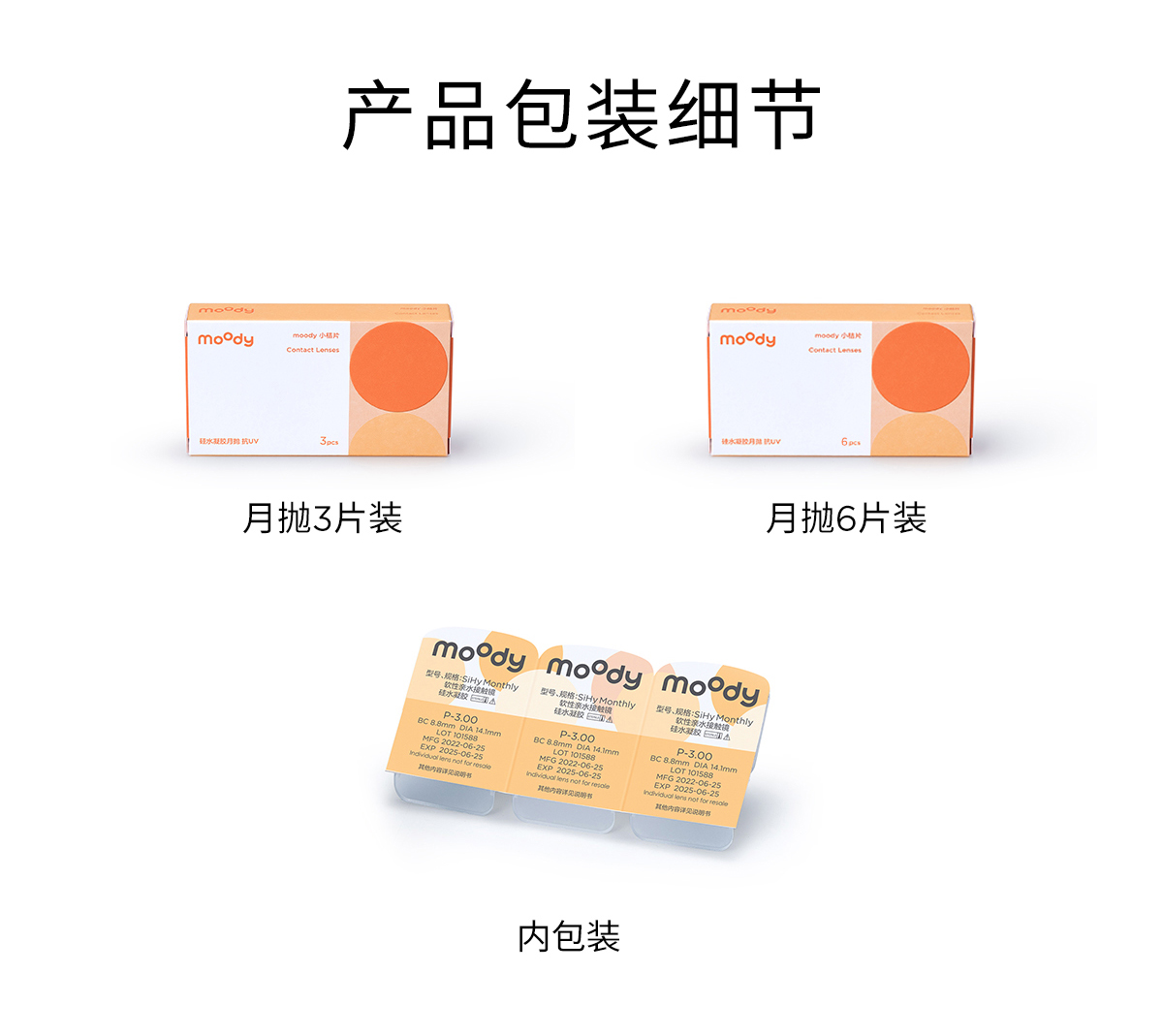 moody小桔片系列透明片月抛 隐形眼镜 3片装/6片装